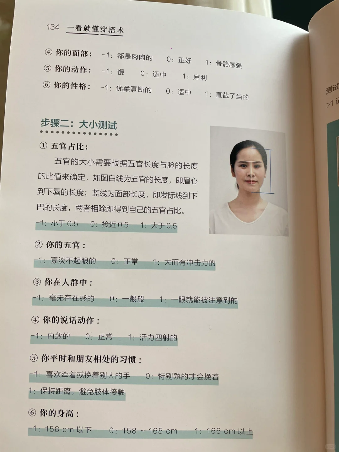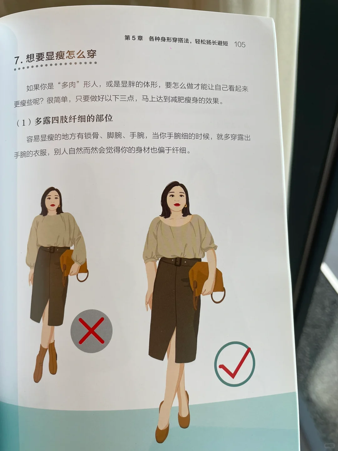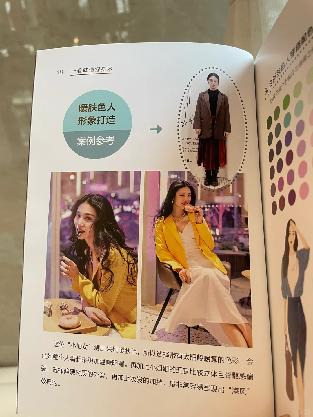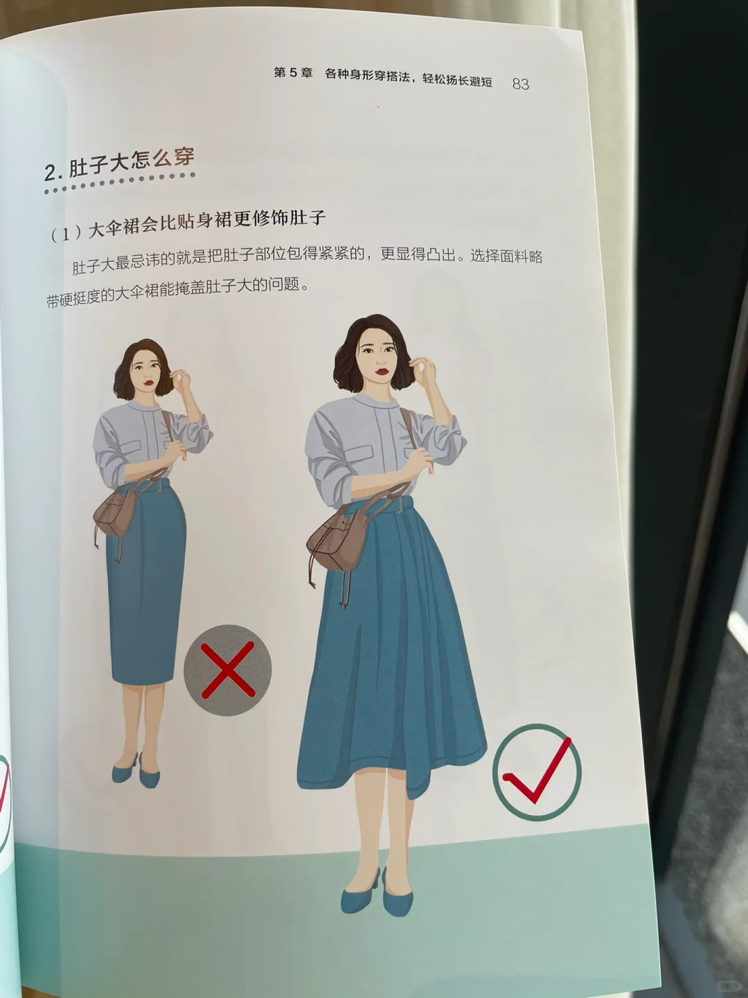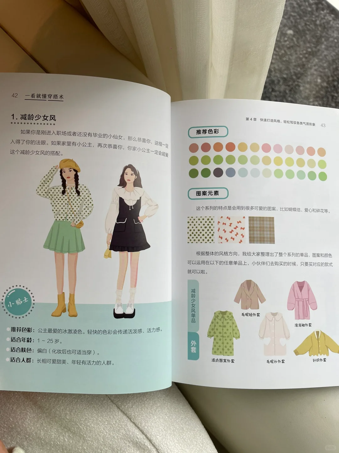 🔵肤色有冷暖,身材有胖瘦,世界上没有丑的人,只有没挖掘出自己特色的人,这本书可以说是穿搭小白的福利天花板,真的做到了保姆式教学,图文并茂,上衣穿什么?下装怎么搭?发型怎么调整?鞋子怎么配?全部都用图片呈现出了,不用靠想象,1:1照着穿就行