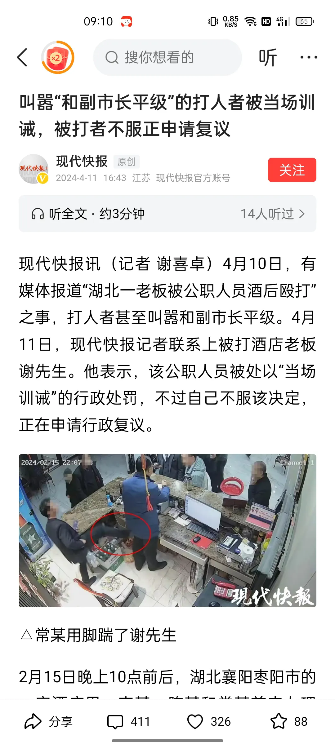 没想到!公职人员打人仅被训诫!刚刚看到媒体报道,湖北一个宾馆老板被公职人员酒后殴打后,仅仅被处以训诫,单位也仅仅给予了警告等处分,宾馆老板也是相当不服气,正在申请行政复议。