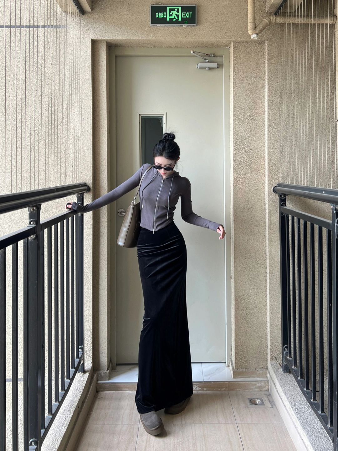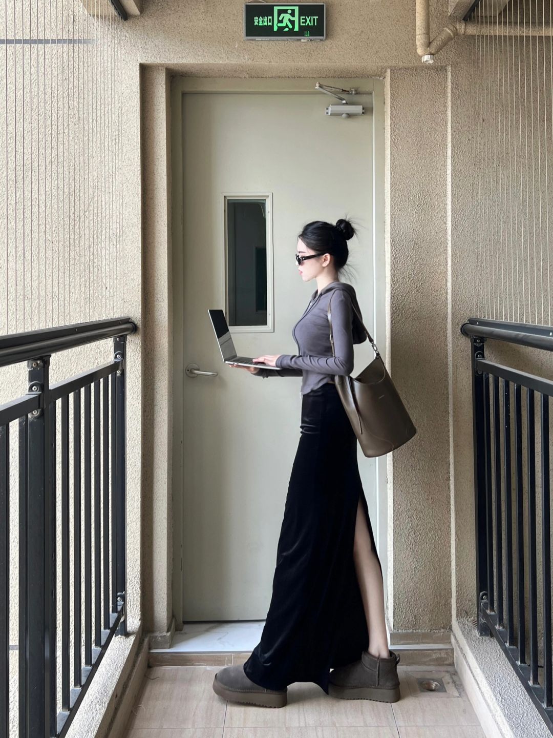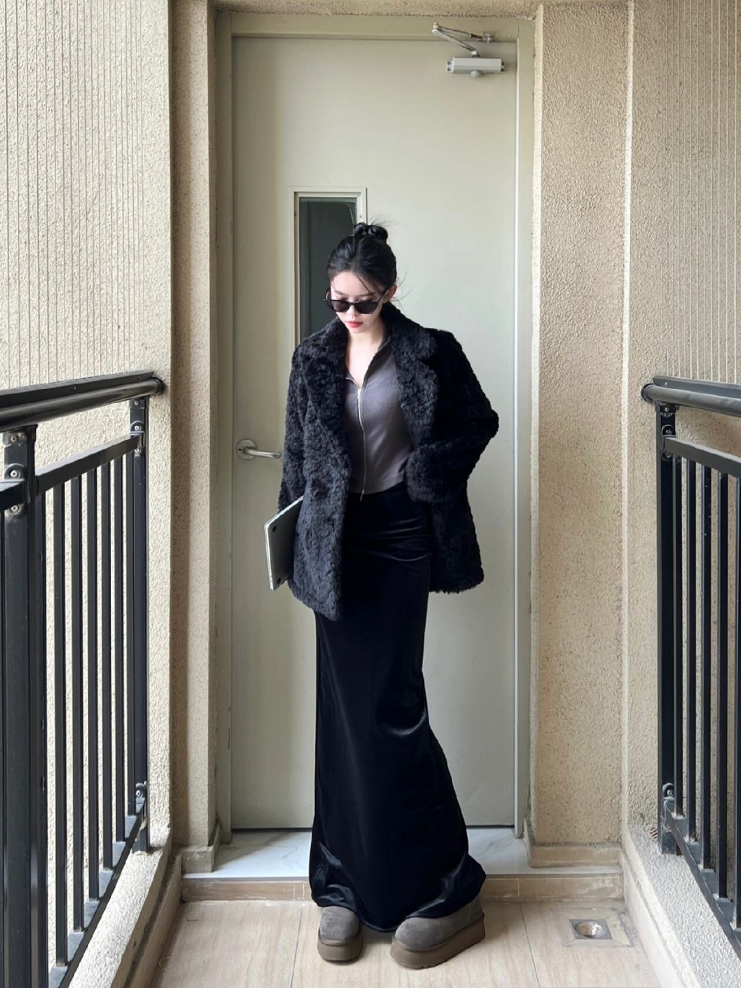 母其弥雅秋日穿搭美图:黑色优雅身材真好