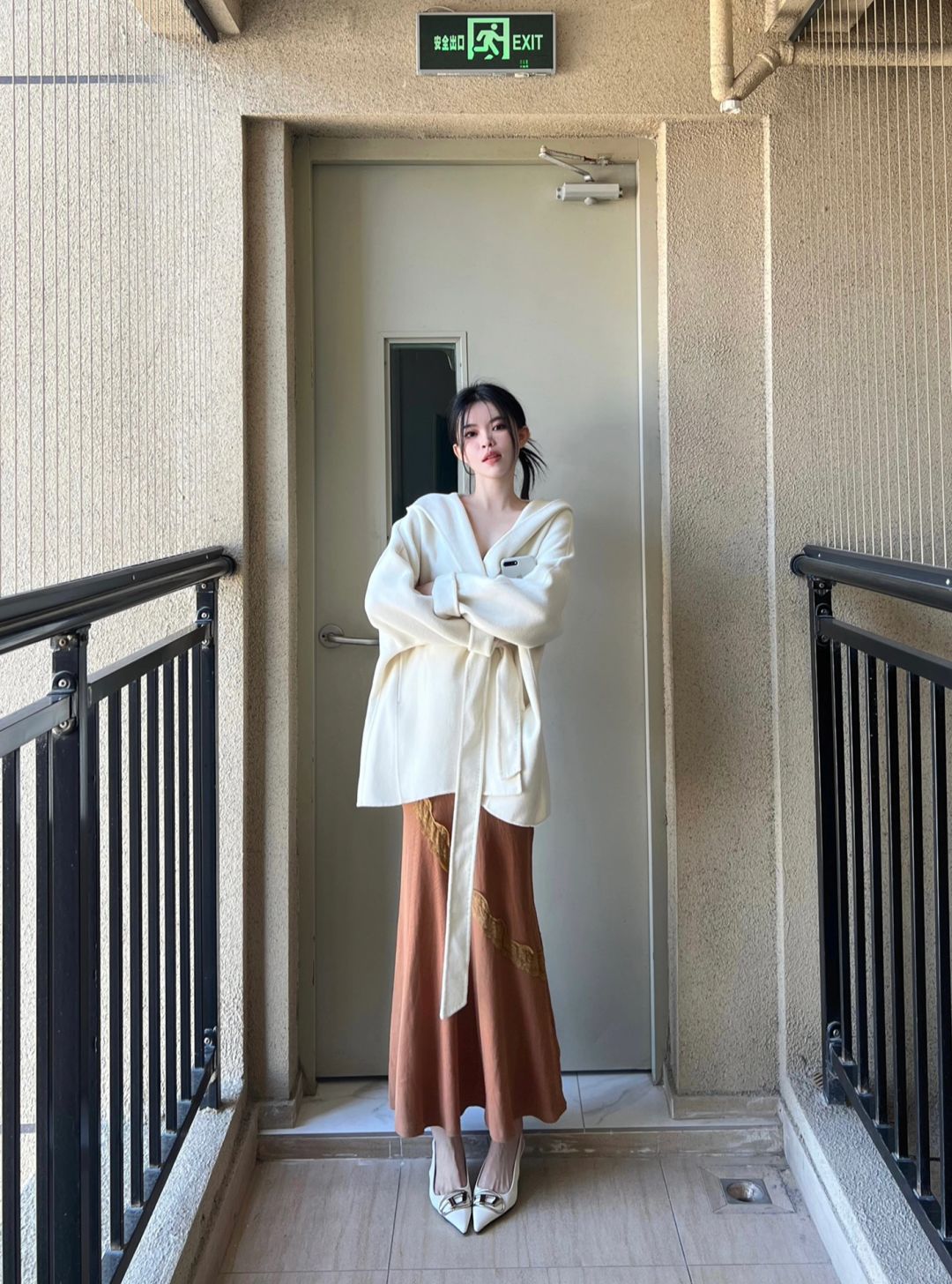 米白裙子一穿,会议室秒变T台。不靠loud颜色抢戏,靠面料说话。真丝垂得