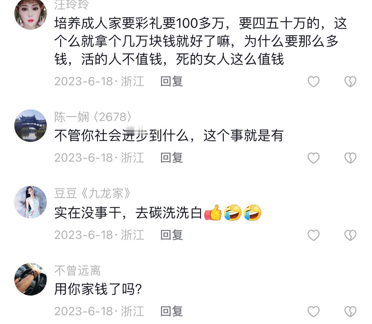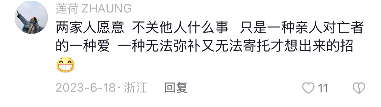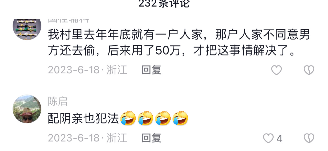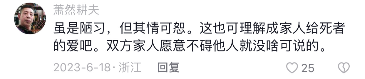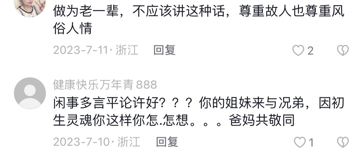 投稿,“难崩,一博主辟谣温州冥婚入赘是谣言是古时候陋习,评论区:《尊重风俗》《我**/亲戚/朋友就干过》《我也想干》《相互愿意怎么了》《又不是你家钱》”