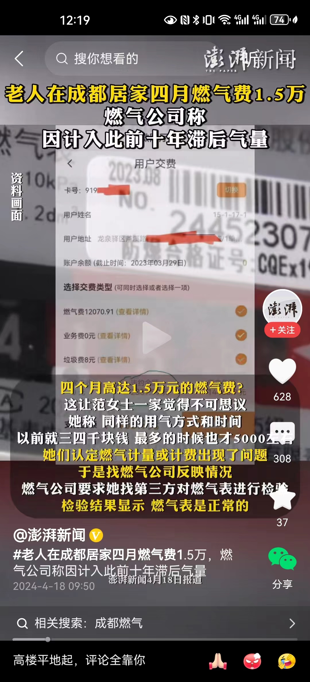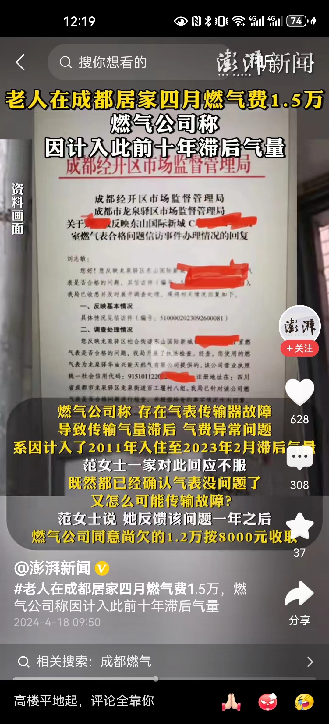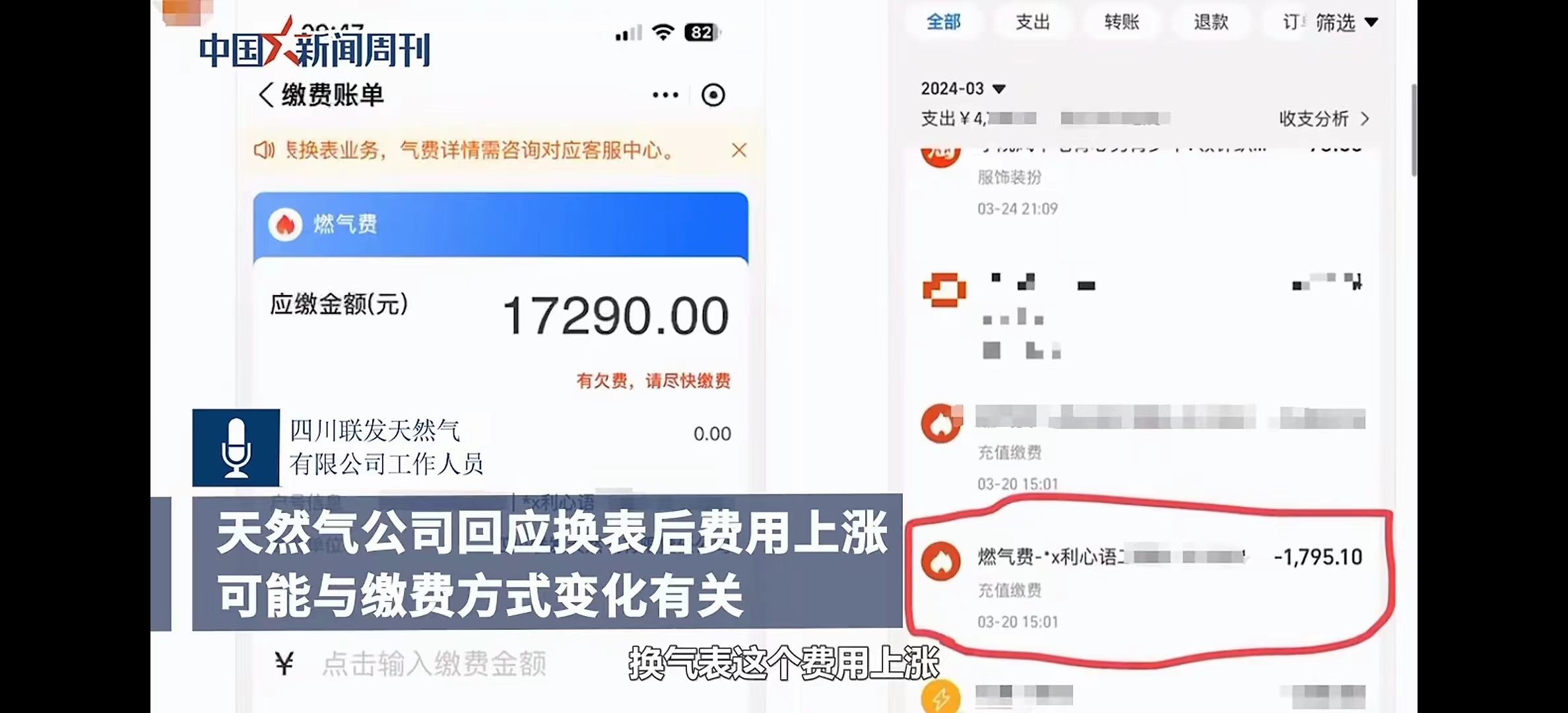 居民产生错觉与否不知道,但是燃气费用在更换表前和后,发生了巨大的账单差异,这肯定是需要仔细查明。即使收费方式转变,变成当月收费,最多也就与原来的月费用相差两倍而已,怎么可能会出现成10倍乃至百倍的差别呢?#成都天价燃气# #旺苍燃气表更换#