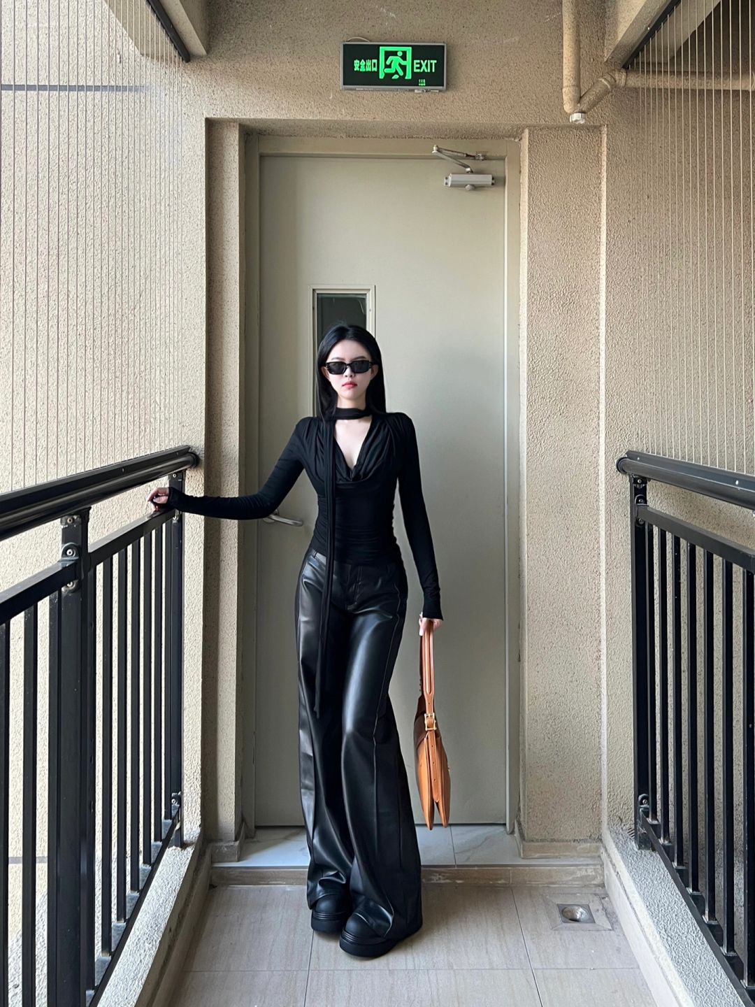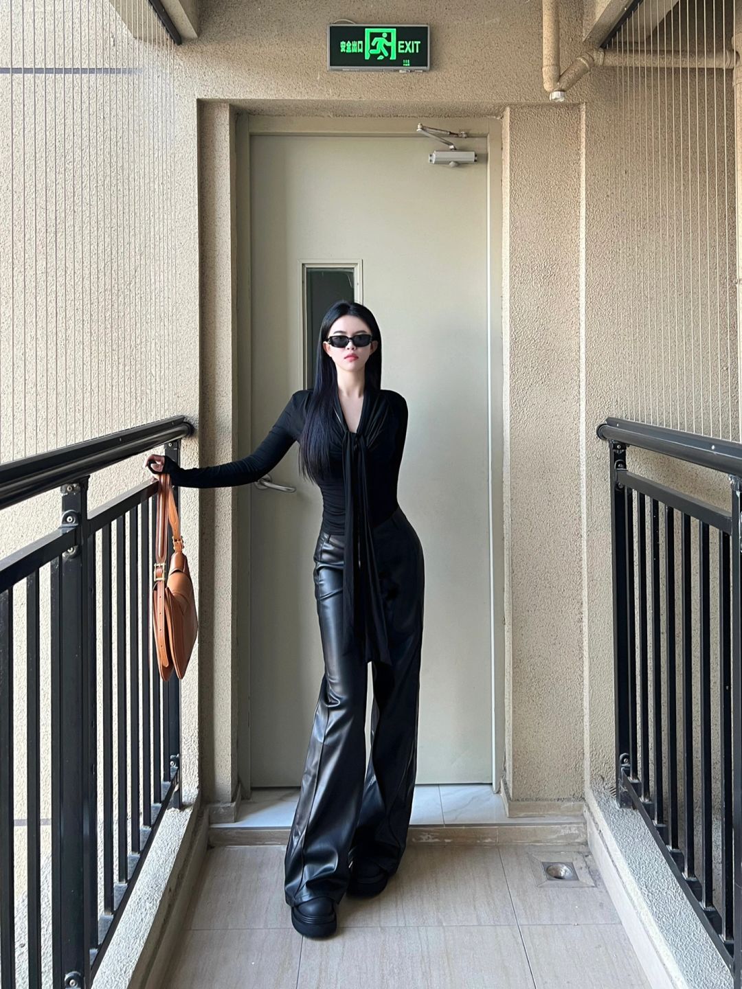 母其弥雅秋日穿搭美图:黑色优雅身材真好