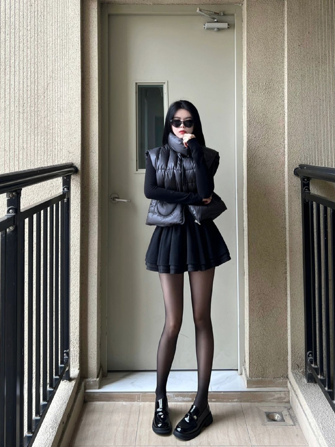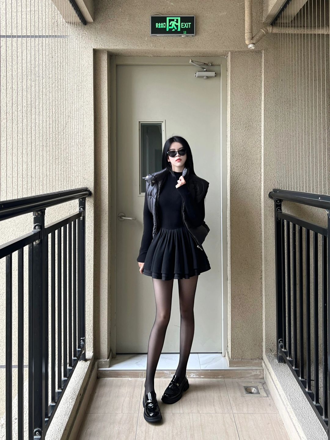 母其弥雅秋日穿搭美图:黑色优雅身材真好