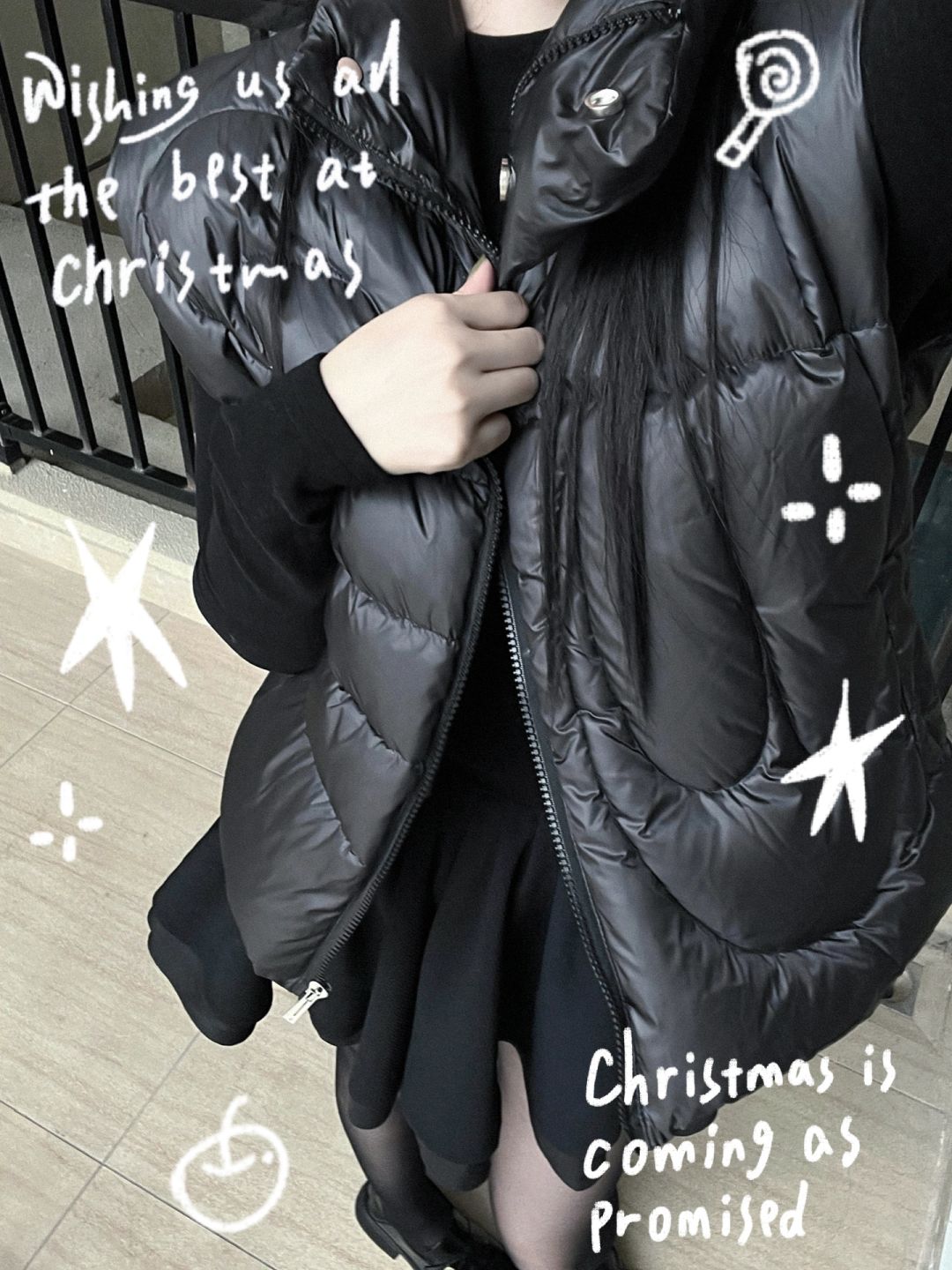 小黑裙 羽绒马甲 圣诞节 冬季穿搭 想记录下此刻 这个模板有点东西