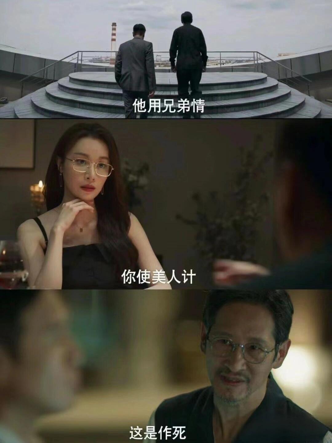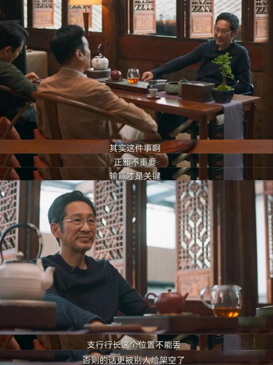 看看这请的一众陪客学问可大了:吴显龙(谢的合作伙伴,也是赵行的兄长)、周琳(赵行红颜知己)、戴斌(赵行恩师的儿子,现任赵的秘书).谢致远打着如意算盘,想借用这一行的强弱关系360 度拿捏赵行.