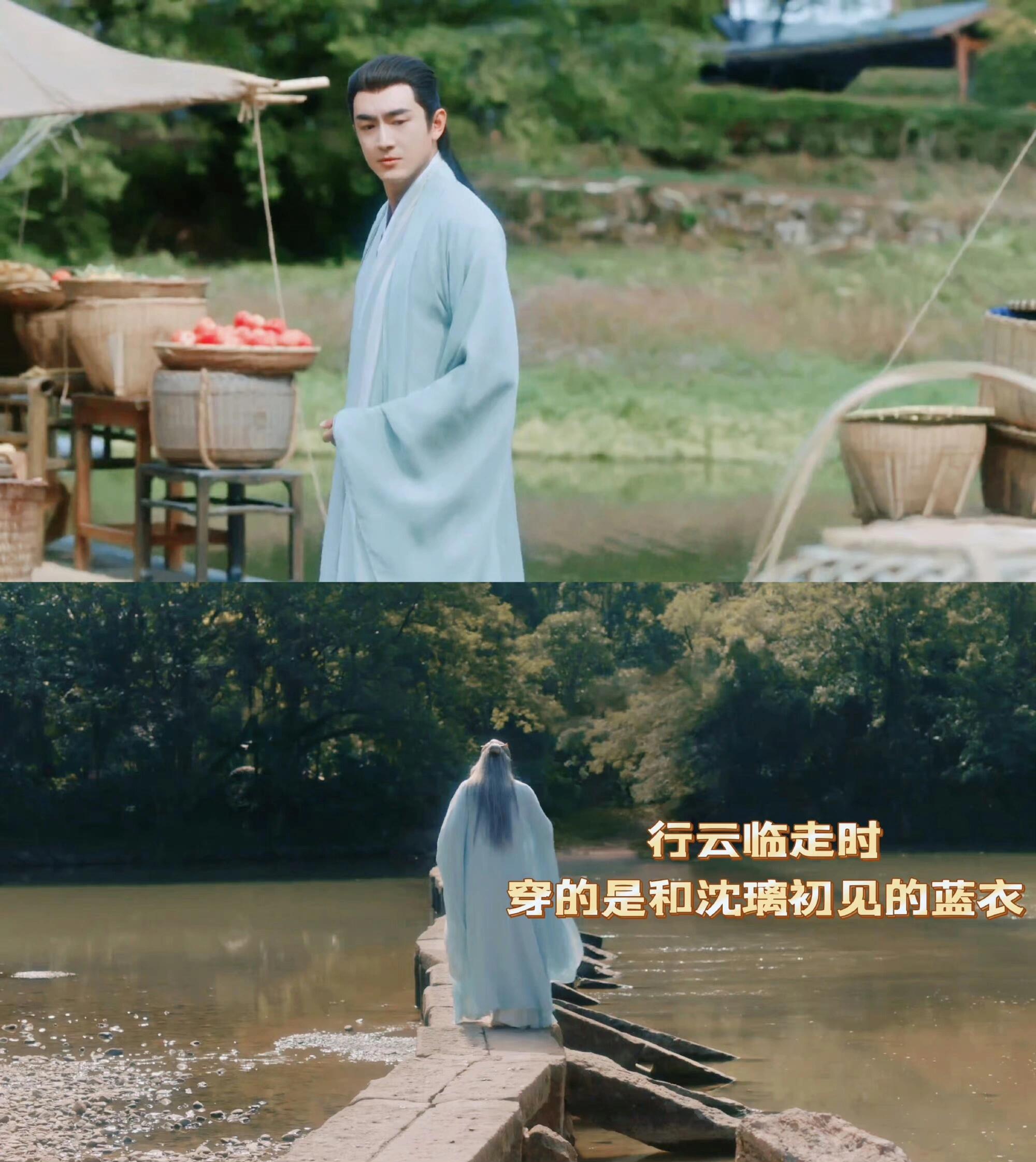 行止在曾经相遇的石桥旁告诉沈璃,行止便是行云,被沈璃微笑着否定,对她而言,是不一样的。此时镜头扫过,原处正是他们隔着烟雨对视的过去,物是人非。近处是现在,原处是曾经,与凤行真的不拿放大镜看都不行。