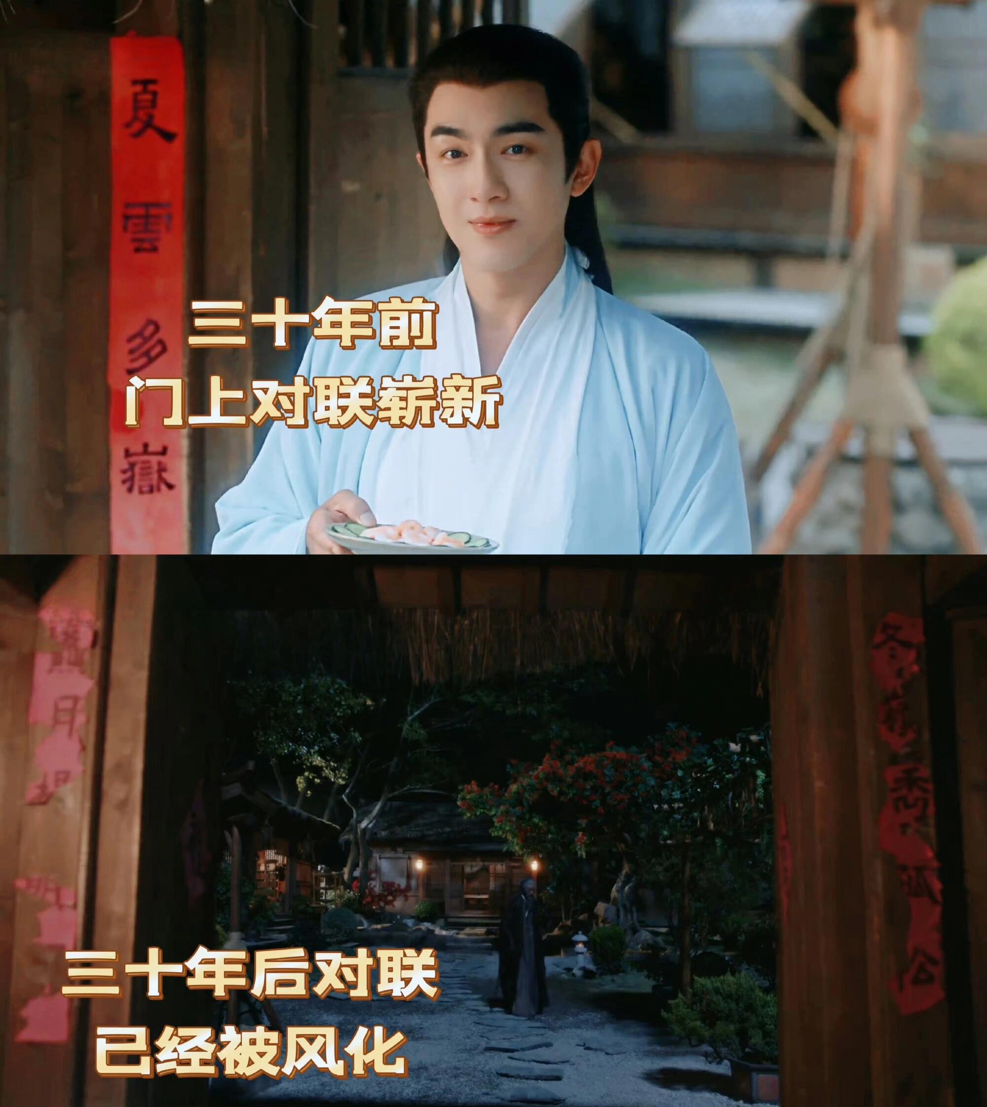 三十年后行云小院的对联也有了被时光侵蚀的痕迹,风烛残年的行云,已经没办法保持小院永远光亮如新了。