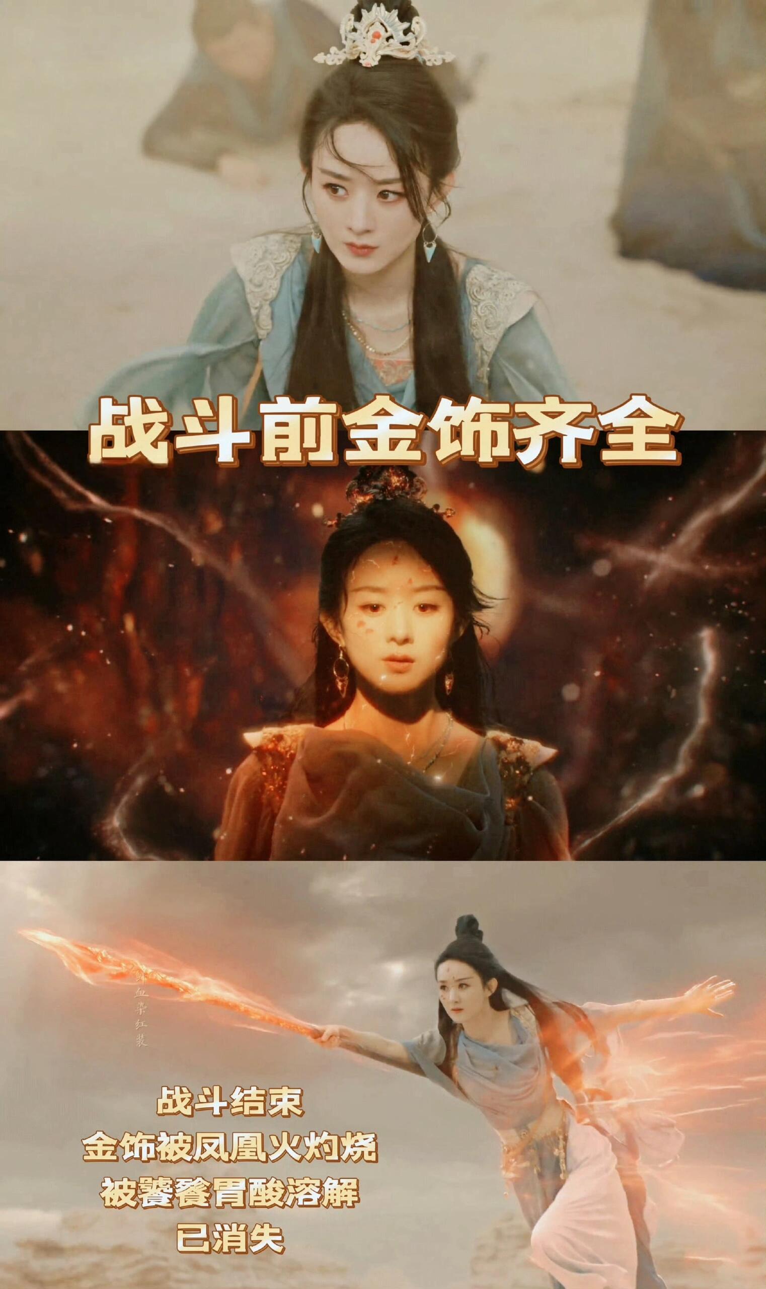 沈璃大战魑魅,被魑魅吞食入腹,靠着凤凰火破体而出,此时之前佩戴的金饰早在酸蚀和火灼下消失殆尽了,衣服也有多处破损。