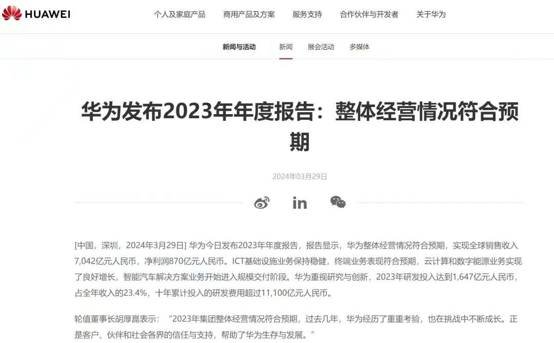 #华为2023年营收7042亿元#依靠着智能汽车控制系统,华为翻身了!华为公布了2023年的业绩,实在是太亮眼了!可以预见华为2024年的整体业绩,有可能还会继续高速增长。就正如华为之前所预料的,在2023年已经走出了至暗时刻,再次迎来了稳健的业绩增长。