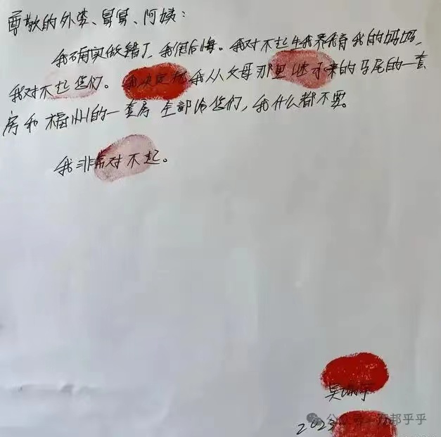 每每看见这厮写给长辈的悔过书就想笑。两套房子什么都不继承 留给你们 你作恶滔天,还有那命继承吗?[裂开][抠鼻]