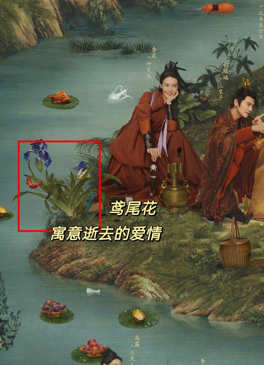 3、叶灵儿身边有凋零的鸢尾花,叶灵儿就是郡主林婉儿府上,那个和范闲决斗的大宗师女儿。二皇子和叶灵儿有婚约。蓝色鸢尾花寓意纪念曾经逝去的爱情。这是代表和二皇子的爱情终将逝去,只剩下怀念。