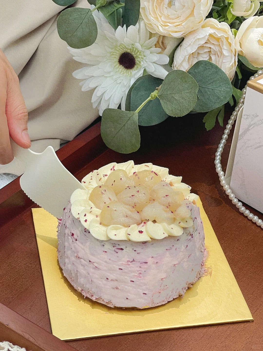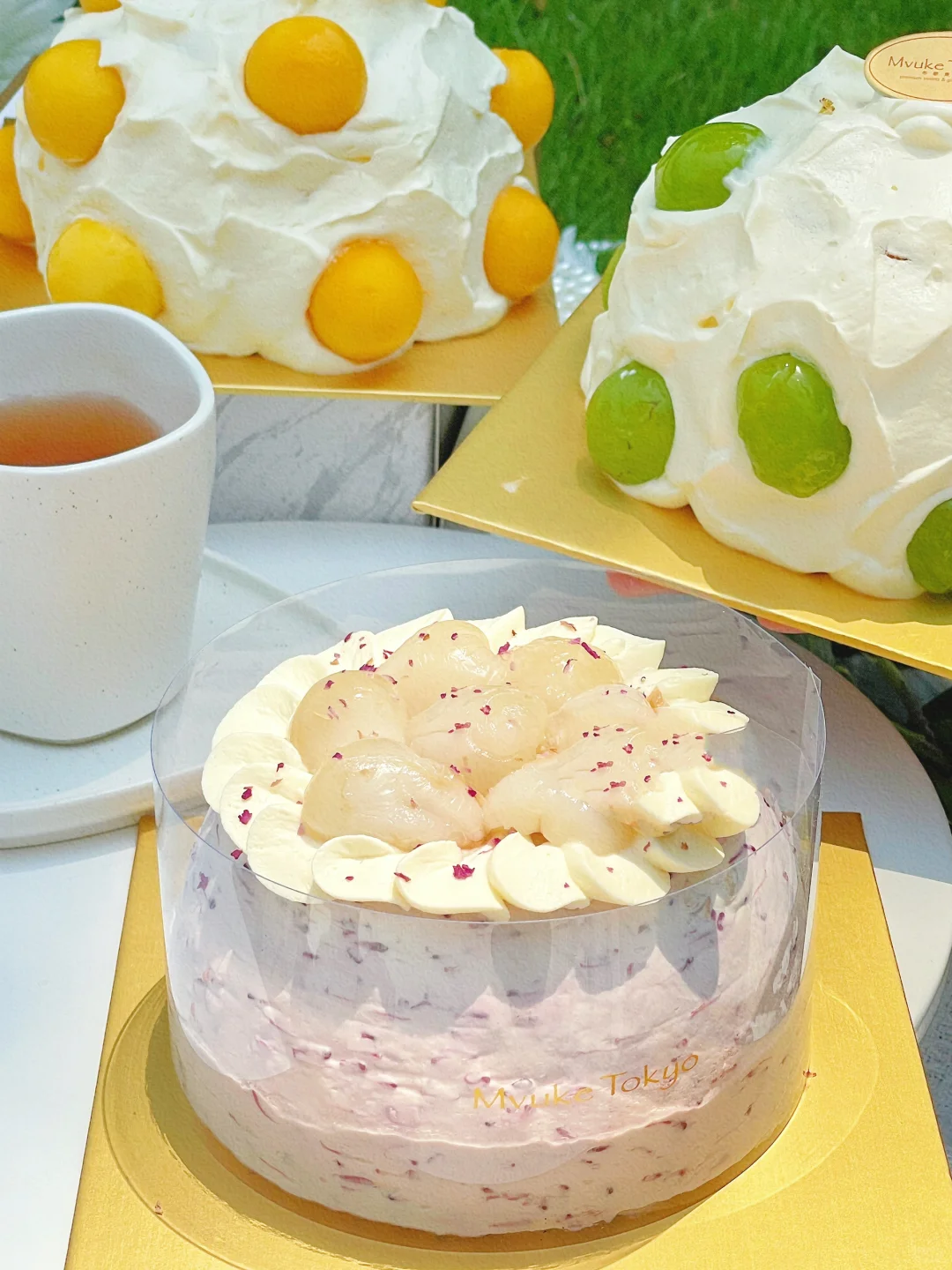 杨梅荔枝的蛋糕,口感酸甜,简直是夏日必备甜品