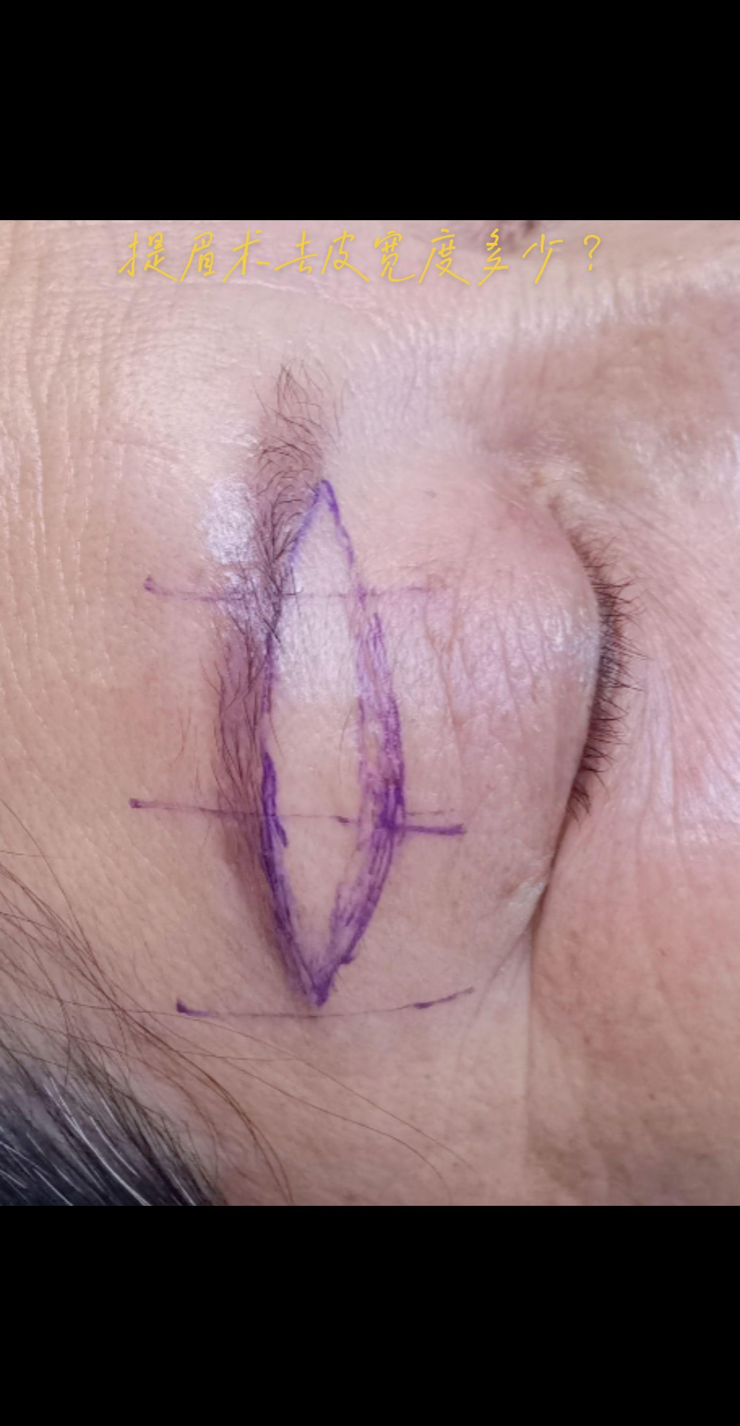 提眉术去皮多少?提眉手术去皮量除了理论测量,还要结合皮肤质地、站立和平卧位睁闭眼下垂状况、几十年的整形经验等因素考量,得出一个精准的去除皮肤宽度。