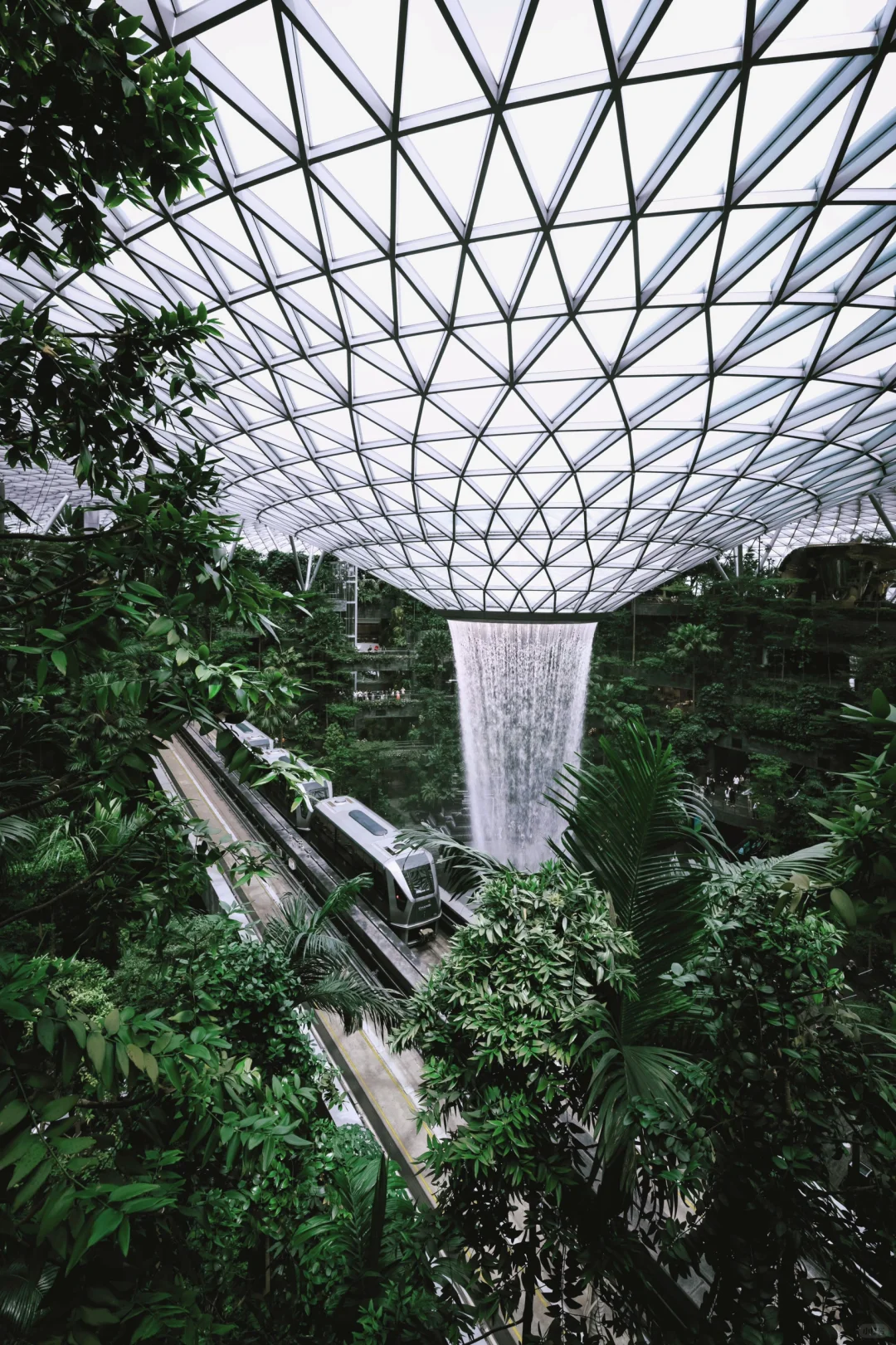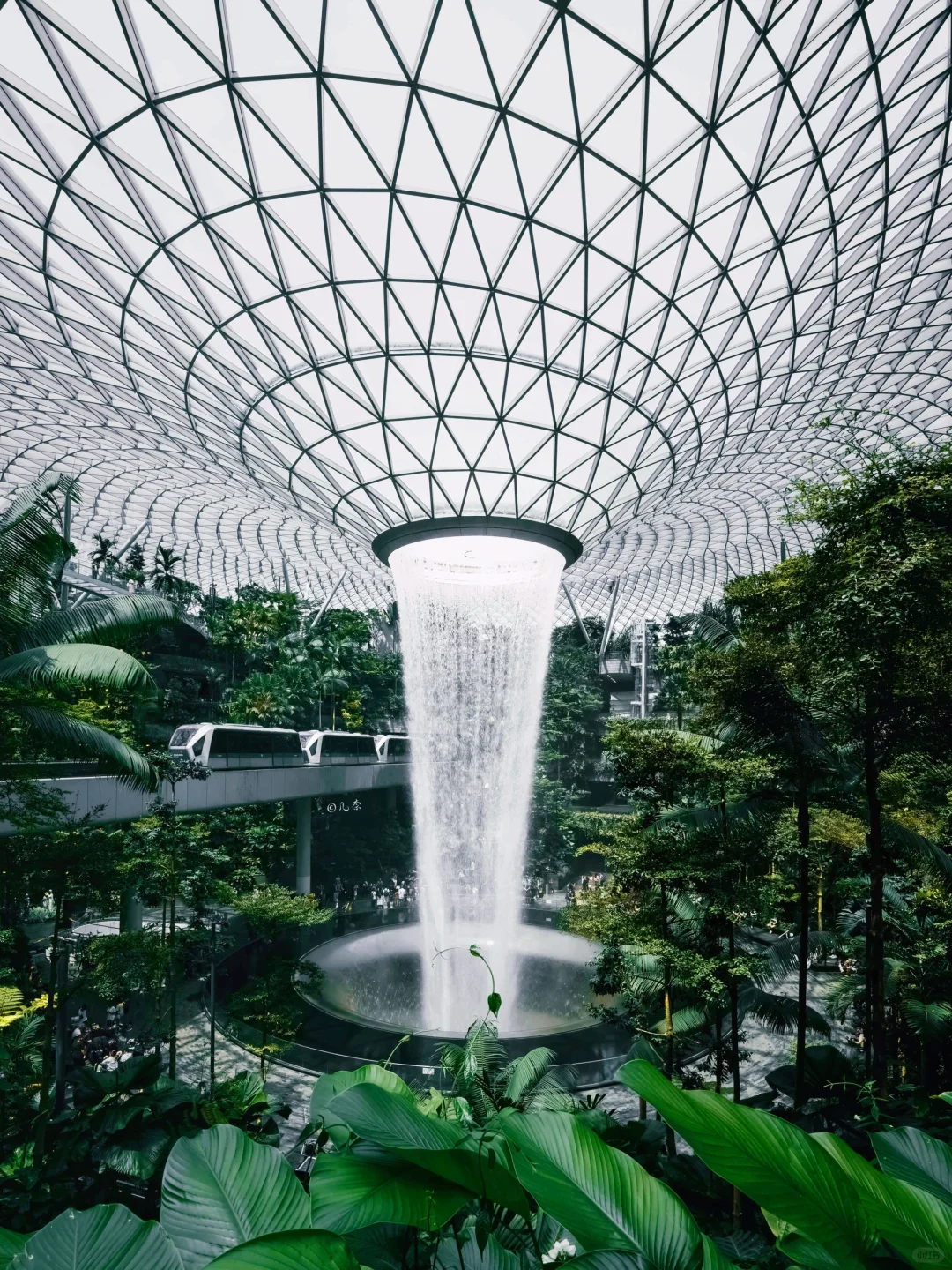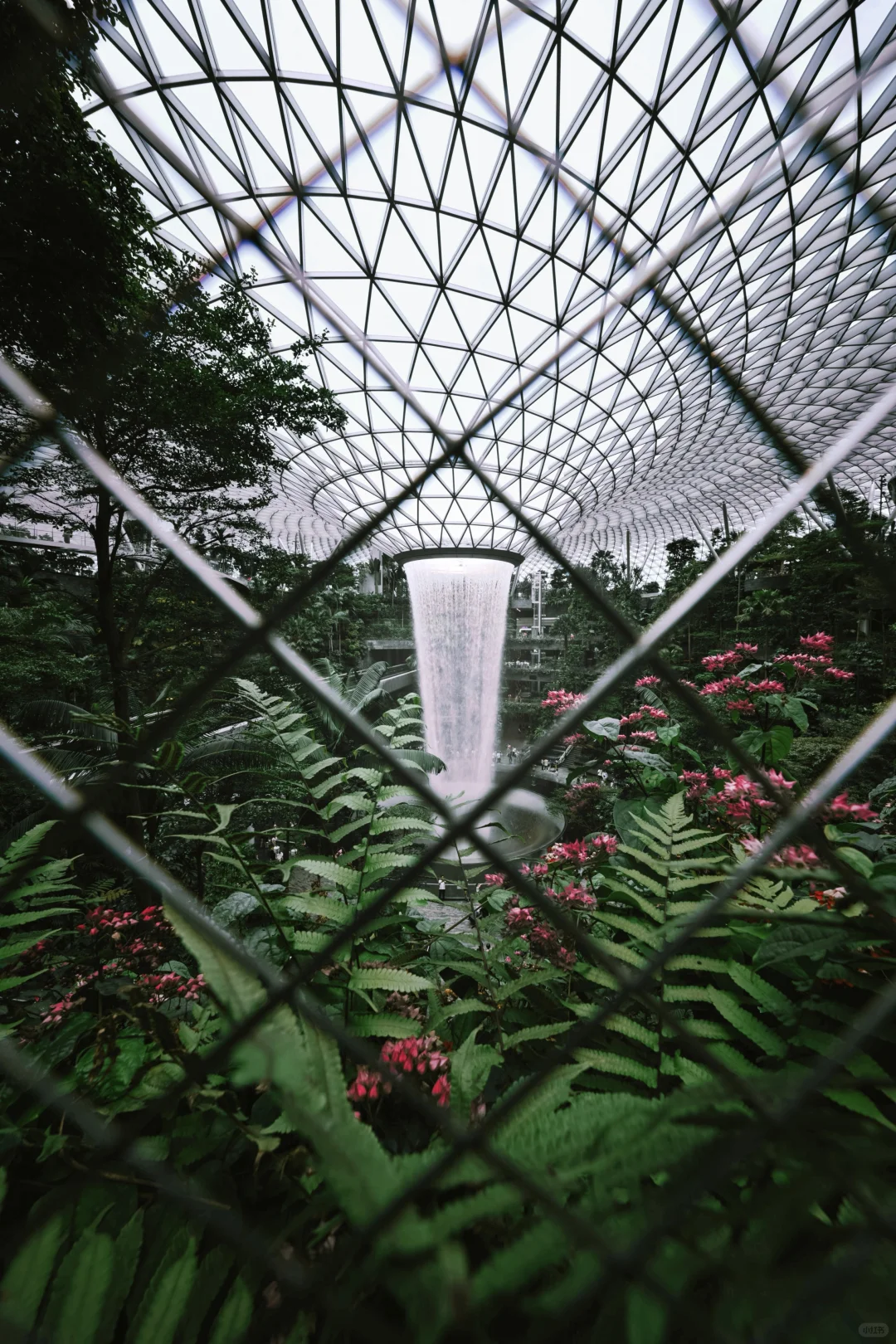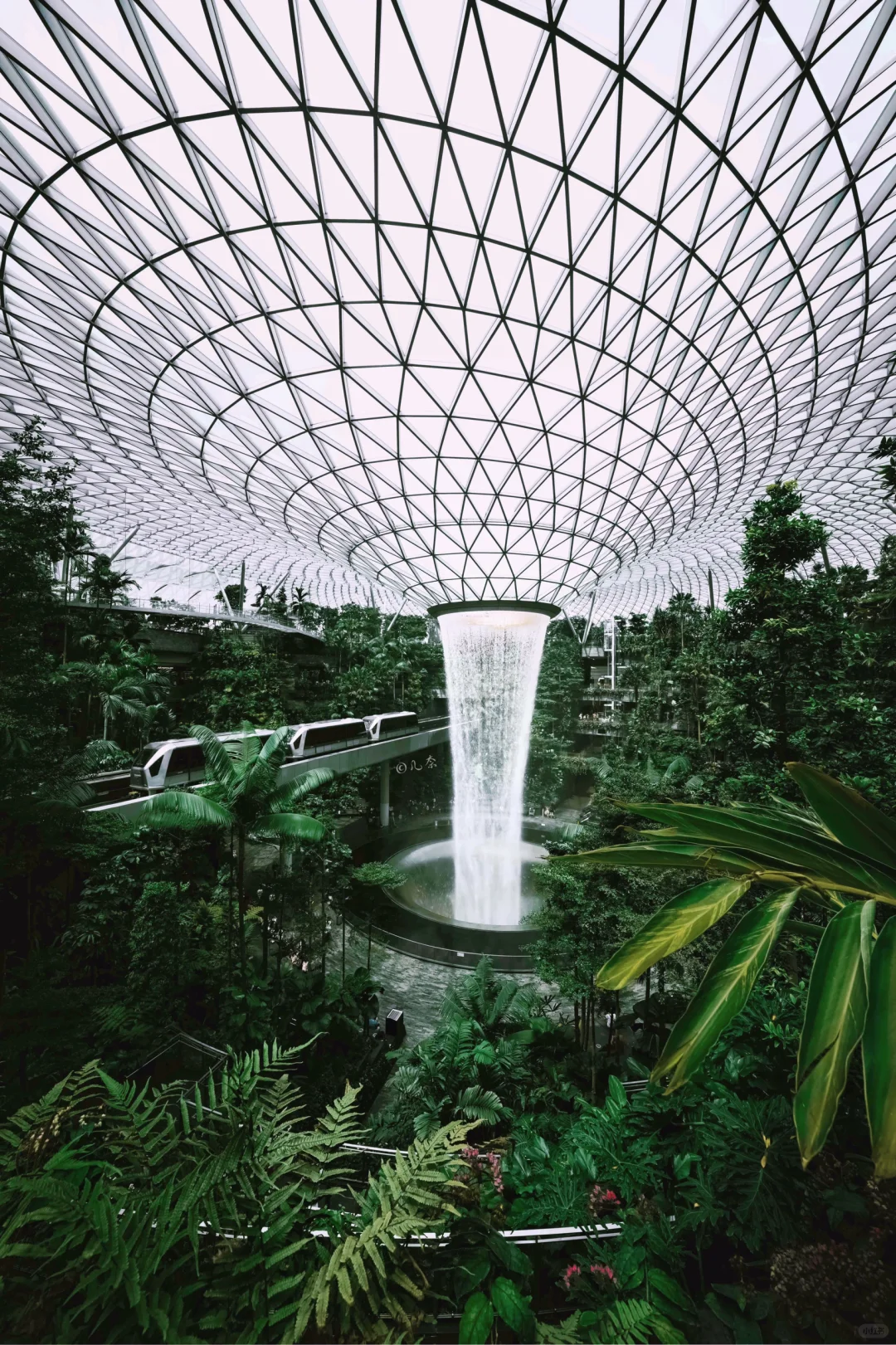 我是几奈,坐标上海的90后摄影博主 巨大瀑布从头顶的玻璃穹顶倾泻而下 我走进了热带雨林包围的机场 这里也是疯狂动物城的设计原型 这个魔幻与生态并存的建筑 来这里感受全世界最特别的体验 · 📸6 个最佳拍摄机位 🌟2F 的正对小火车轨道的天桥 最正的视角,对称看着非常舒服 🌟2F侧面有个小的观景平台 绿植做前景可以拍到沉浸式视角 🌟3F 同样位置能拍到更高的视角 🌟3F放低视角透过铁网拍摄也很创意 🌟4F 小火车正上方近距离拍小火车 🌟5F 顶楼可以站到玻璃栈道上方拍摄 ‼️但体验上桥需要额外的费用 推荐焦段12-24MM 焦段越广收纳的视角更多 视觉效果也越震撼魔幻 · 🍃新加坡| 星耀樟宜机场 与机场相连接的超大型商城 餐饮娱乐购物一站式 很多餐厅内部都能看到瀑布景观 · 🕤瀑布开始时间为中午11:00 中间会穿插雾气效果也非常魔幻 晚上20点和21点会有两场灯光秀 · 🚶🏻交通信息 📍T1 航站楼离瀑布点,步行5min 📍T2 和T3 有连廊直达,步行15min 📍T4 需要搭乘免费班车,大概 25min ·