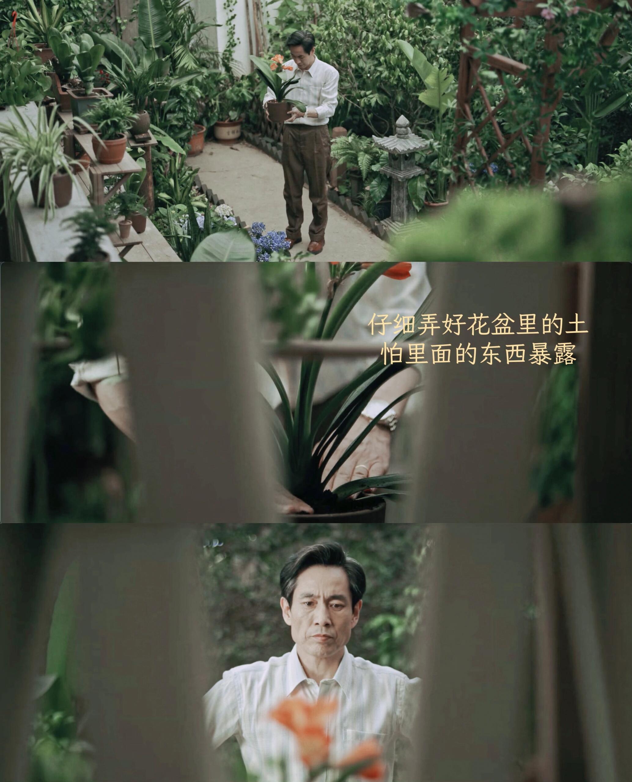 p8:老金很紧张的整理花盆,大概率那把折叠刀就藏在这里了(同样也是宝子分析的)。