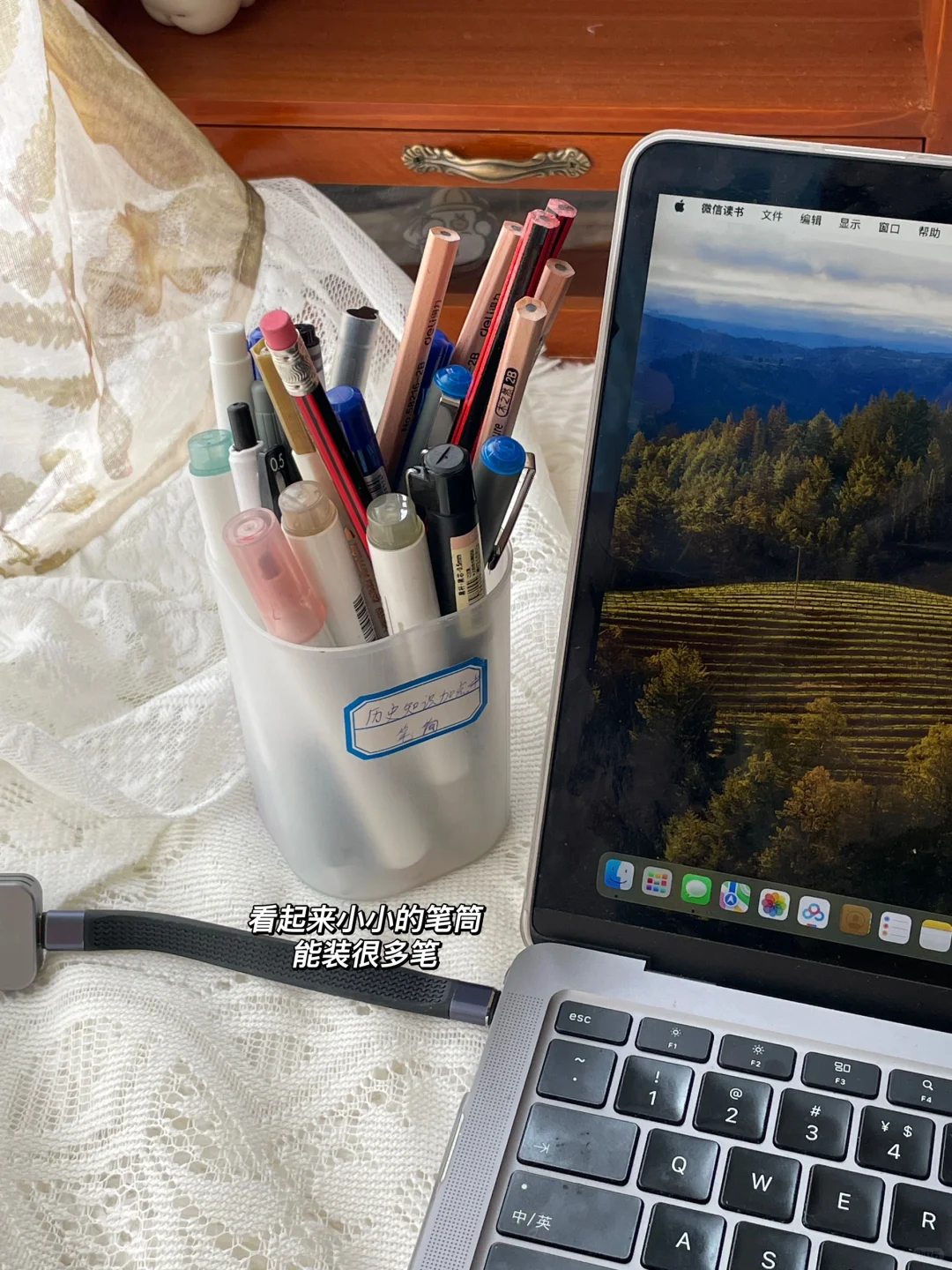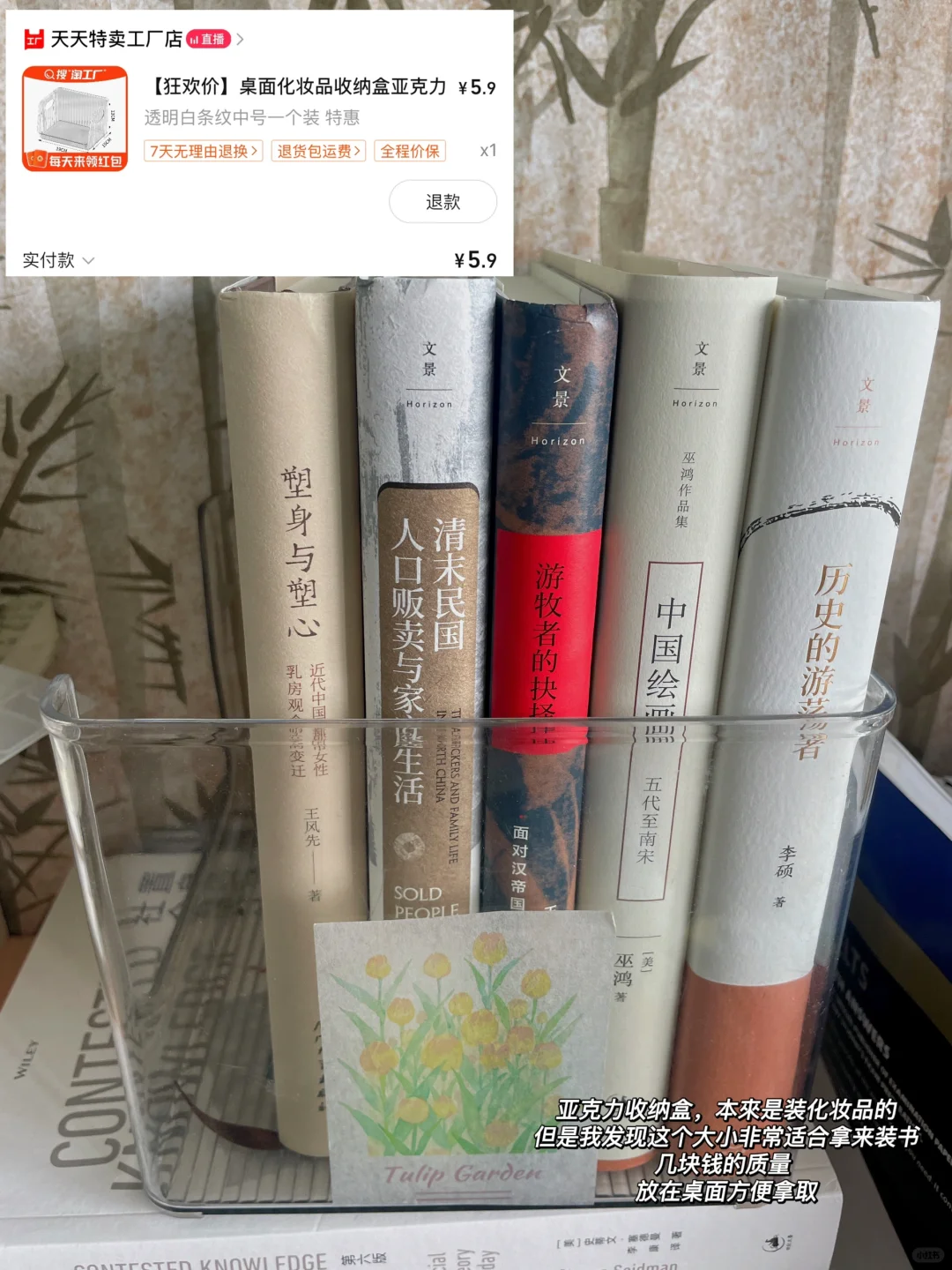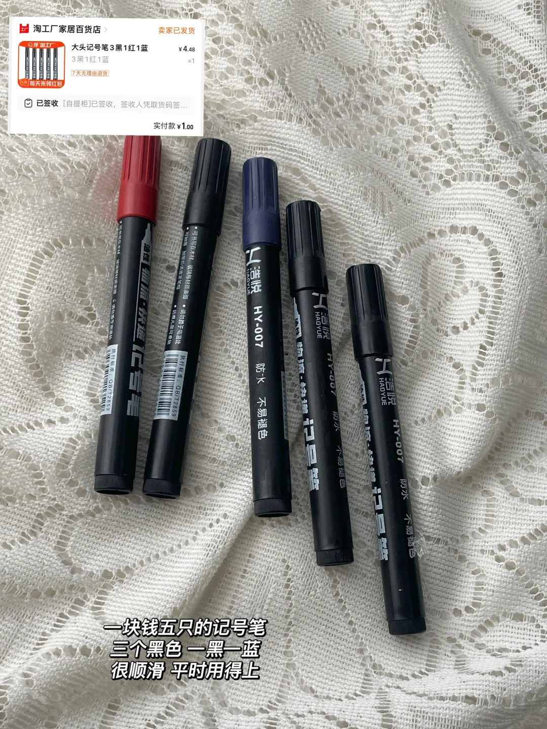 1️⃣亚克力收纳盒,本來是装化妆品的 但是我发现这个大小非常适合拿来装书 几块钱的质量 放在桌面方便拿取 2️⃣1块钱5只的记号笔 3个黑色 一黑一蓝 很顺滑 平时用得上 3️⃣不干胶标签🏷️ 1块钱10张 可以用很久 随取随用很方便 4️⃣笔筒 颜色喜欢 这个材质摸着也舒服 放笔或者化妆刷都好用 5️⃣网格双面胶 粘东西能粘的很稳 这种网状格面 粘的稳也比较好撕下来