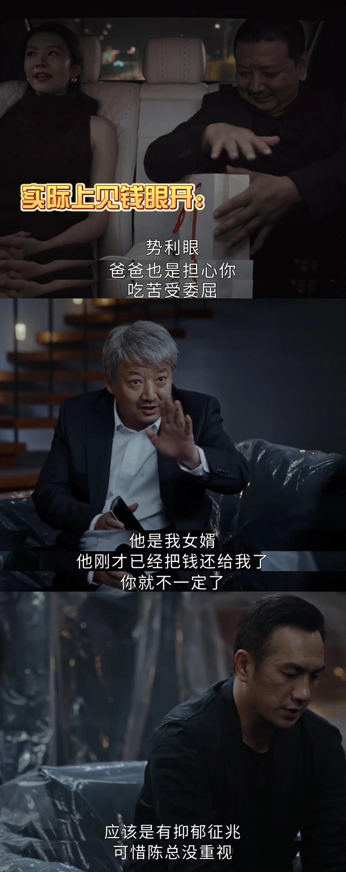 而且费可将钱归还后,他立马情绪暴露,像吃瓜人一样