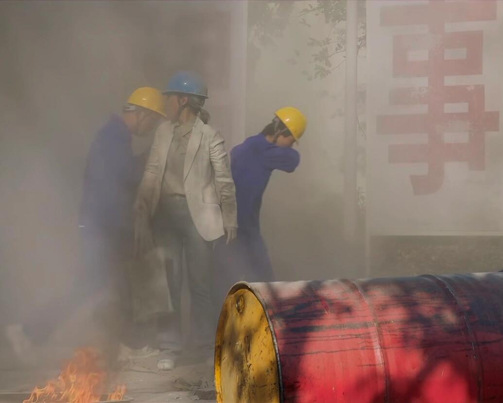 2.爆炸完给到的镜头,墙上的标语『安全出于警惕,事故出于麻痹』,虽然没有给到完整的镜头,但凭几个大字,完全能理解这句老生常谈的话。
