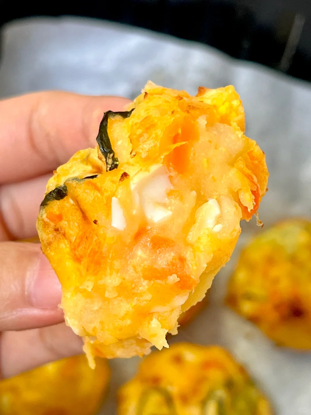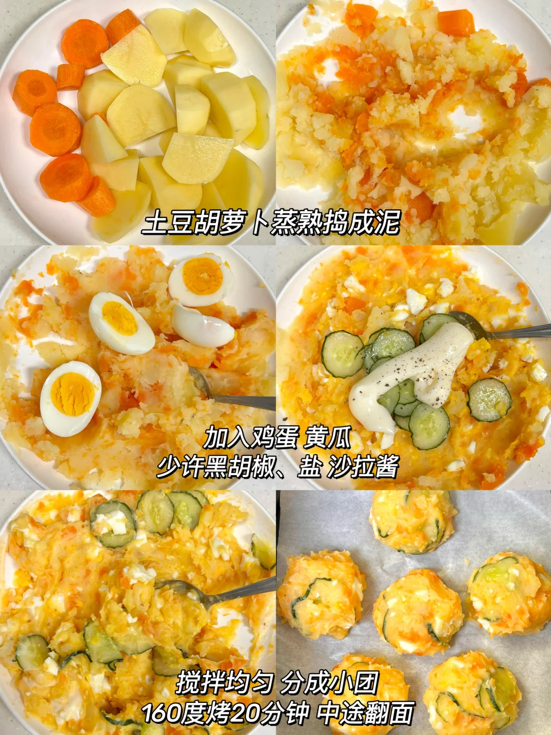土豆泥沙拉球🤤 直接吃就贼好吃 烤一烤口感更丰富!! 外面有一层酥酥的皮 里面还是绵密的~ 咸香咸香的!嘎嘎好吃 做法在图上~ 空气炸锅160度烤20分钟就行啦