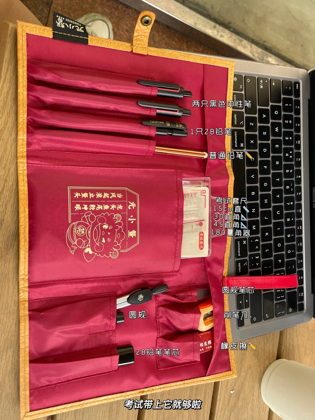 3.准备好高考文具套装(中性笔2,备用笔芯,2B铅笔,橡皮,尺子,圆规),有很多搭配好的,考试前一定要准备透明笔袋装进去。新华文轩出的这个套装里就是什么都有,透明袋都准备好了。
