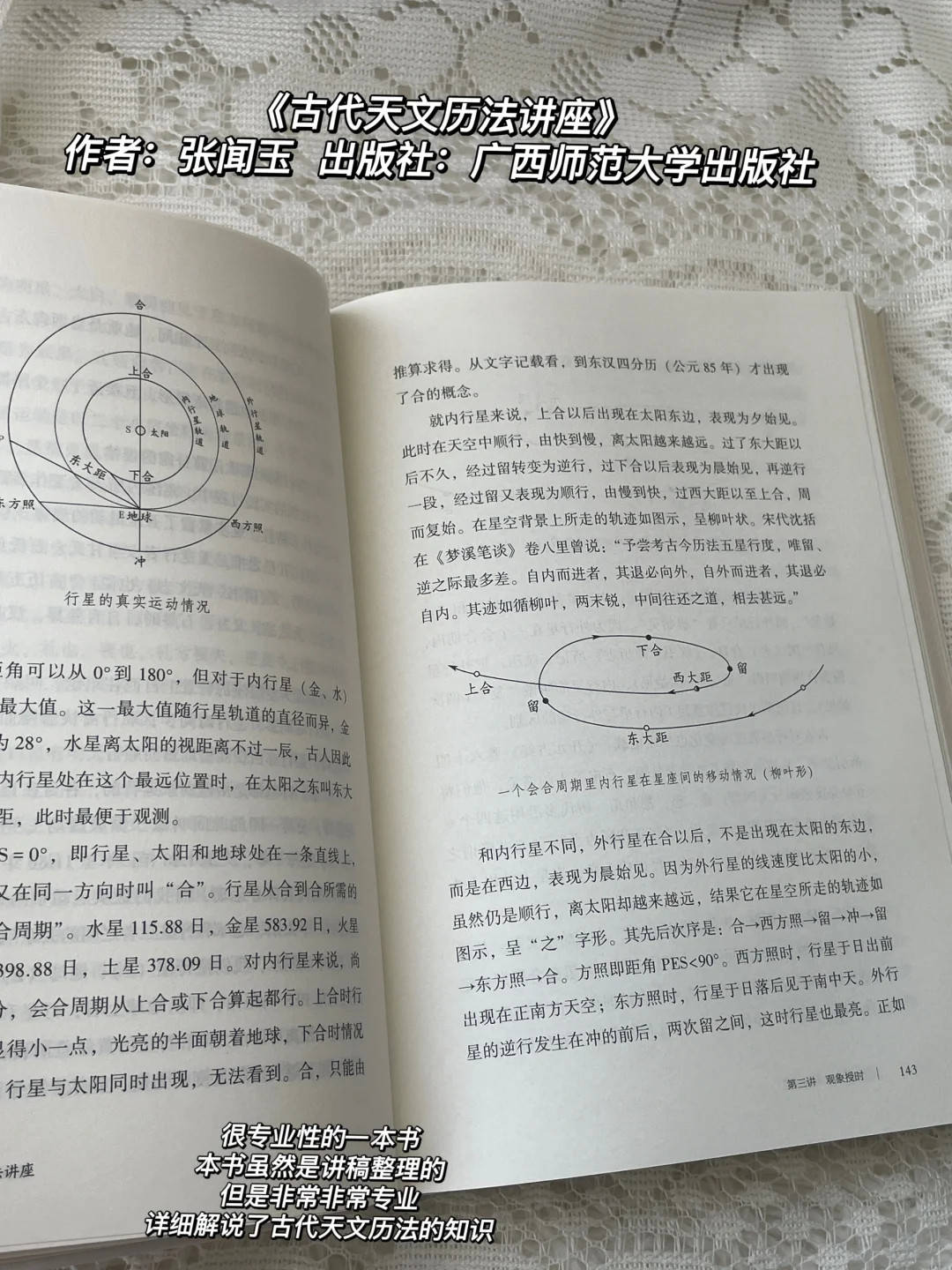[栗子R]这本科普性比较强,适合大多数读者,按照时间顺序介绍中国天文通史,里面配了很多彩色插图。通过大量历史故事和60多个专题回顾了中国天文学的发展历程、重大科学成就与贡献,同时通过历史档案、出土文献和传世文物等载体全面系统地介绍了中国古代丰富的天象记录、科学的星图等等。