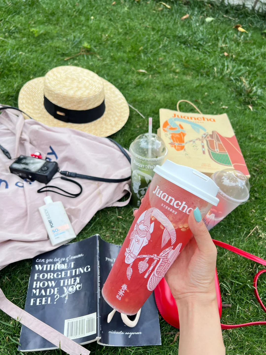 喜欢躺在大自然里,带上我今天去眷茶臻选店买来的新品香草果茶。和我发小一起去享受公园⛲️20分钟