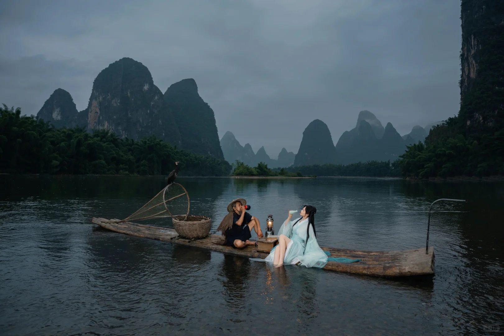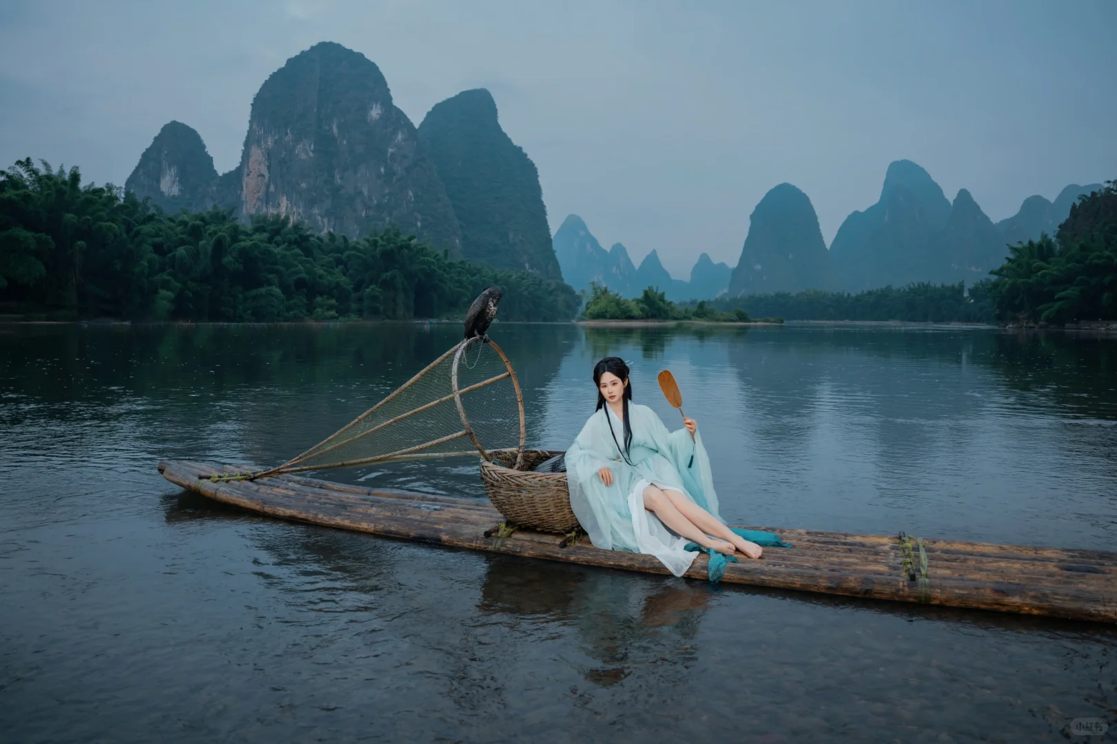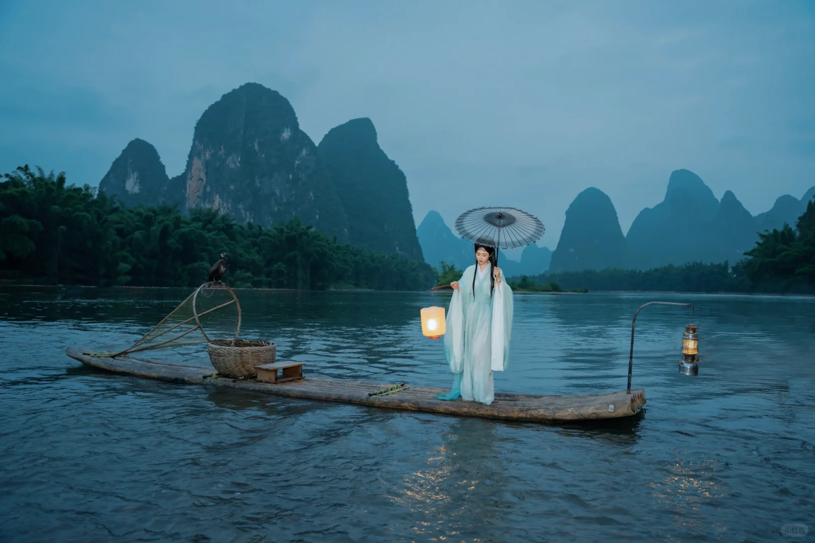 桂林山水甲天下之地,拍渔舟唱晚也太美了