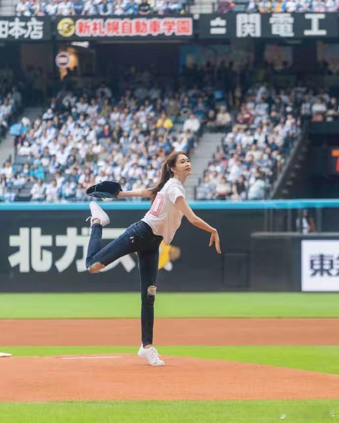 林志玲棒球赛开球,媒体放出林志玲参加北海道棒球赛开球的视频,镜头之中的林志玲也太可爱了吧。已经快要满50岁的志玲姐姐在异国他乡的棒球场上开球,她现身的瞬间就引起了全场网友们的轰动。这也是林志玲时隔5年,首次在日本做公开活动,同时也是首次担任开球赛的嘉宾。22日,志玲姐姐在日本的艾斯科球场现身,她身穿着070号码的球衣,搭配着超级修身的牛仔裤亮相登场。在拿起球准备投出去的瞬间,虽然因为力气不够球滚落在地上,但她扔出的球仍旧还是被对面的捕手给接到了。现场观众为志玲姐姐响起了热烈的掌声。在球场上的志玲姐姐也是做出了可爱的动作,并且喊话:大家的支持给足了我力量。球场上,因为主场是在日本,所以她用日语向全场观众问好:大家好,我是林志玲,这是我人生中的第一次投球,这已经是接受了一个新的挑战,感谢大家对我的全力支持。很荣幸能在如此精彩的体育场获得好的经验,再一次感谢大家的支持。超可爱的林志玲,在北海道的主场看台上面,她还不忘记扭起了舞蹈。站在她身后的宅男看到了林志玲之后乐开了花。网友留言称嫁给了AKIRA(黑泽良平)之后的林志玲越来越年轻态了,生完儿子之后活力四射,整个人被爱所包围着。林志玲有种神奇的魔力,让人看到她心情就好,她的声音很甜,她的表情也不做作,大多数人,即使是美女,也相信会喜欢上林志玲的。都说韩国的棒球开球现场是美如如云,但和张元英 柳智敏 徐彰彬比起来,林志玲并没有输啊,要知道她已经快满50岁了,个人保养真的太好了。其实林志玲能有如此好的状态,她早在一个月前就开始唤醒了身体的运动细胞。甚至多次和老公一起配合着练习开球,从0到1学习正确的投球姿势。上场前她还曾透露非常紧张也非常兴奋,昨天练习的时候还有坏球,但祈祷这一次的正式场能不会失误。在正式投球的时候,林志玲的球并没有投得太好,但好在球滚到了捕手的面前。林志玲表示有点可惜,但大家的热情给了自己足够的自信。林志玲的个人状态真的超好,羡慕她这样子的身材,喜欢这一种身材,爱了,为志玲姐姐点赞。#林志玲开球#