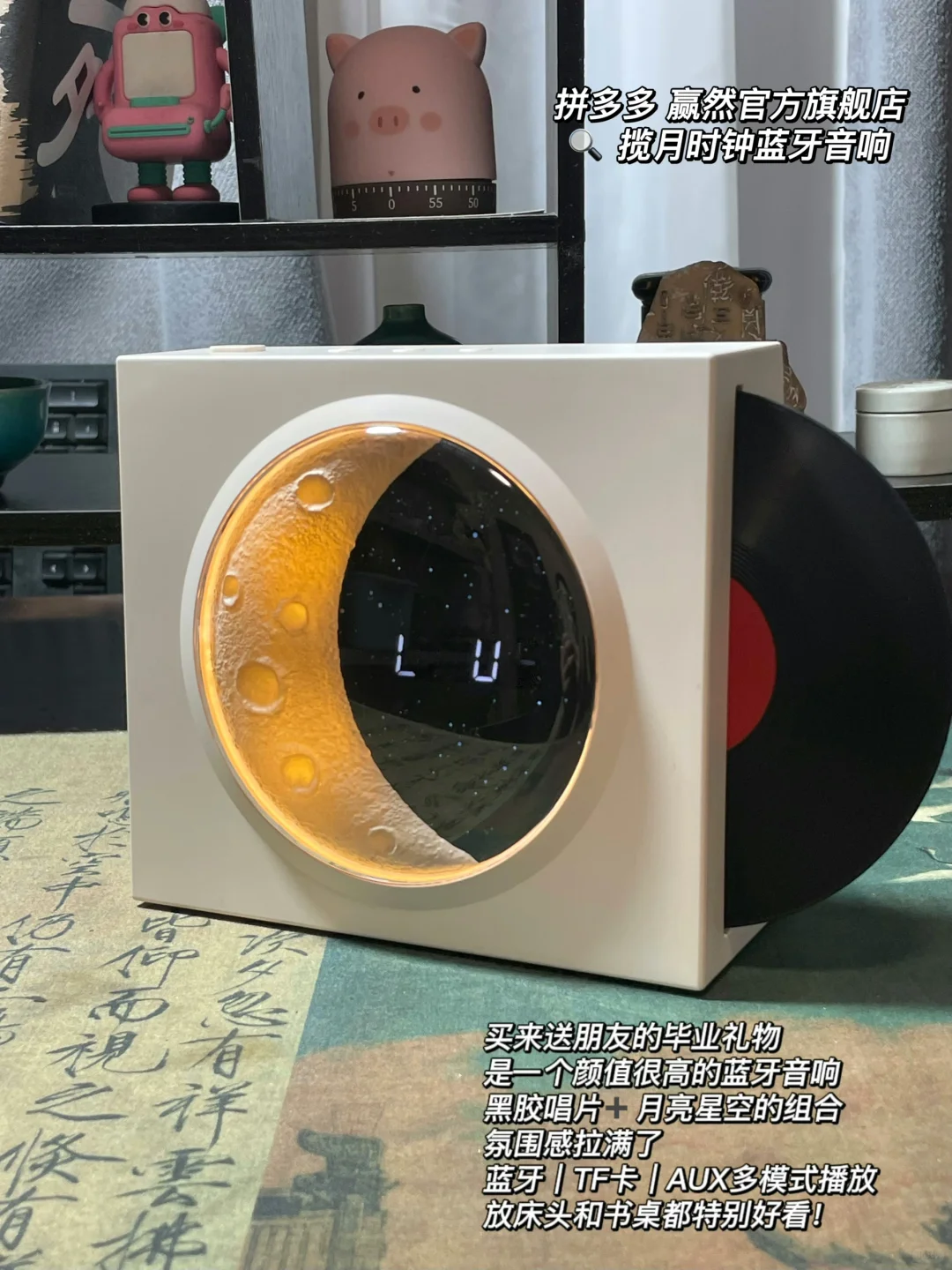 一个好用的耳机能够帮助度过很多无聊的时间 AirPods 2战损版 音质没得说 同价找不到更好的 颜值也很高 最大的优点是不会耳朵痛 音质又很好 除了不降燥之外其他的无敌了 漫步者的头戴式耳机 性价比高 颜值没得说 因为我很爱去咖啡店 很需要降燥效果好的耳机 揽月时钟蓝牙音响 买来送朋友的毕业礼物 是一个颜值很高的蓝牙音响 黑胶唱片➕月亮星空的组合 氛围感拉满了 蓝牙|TF卡|AUX多模式播放 放床头和书桌都特别好看!