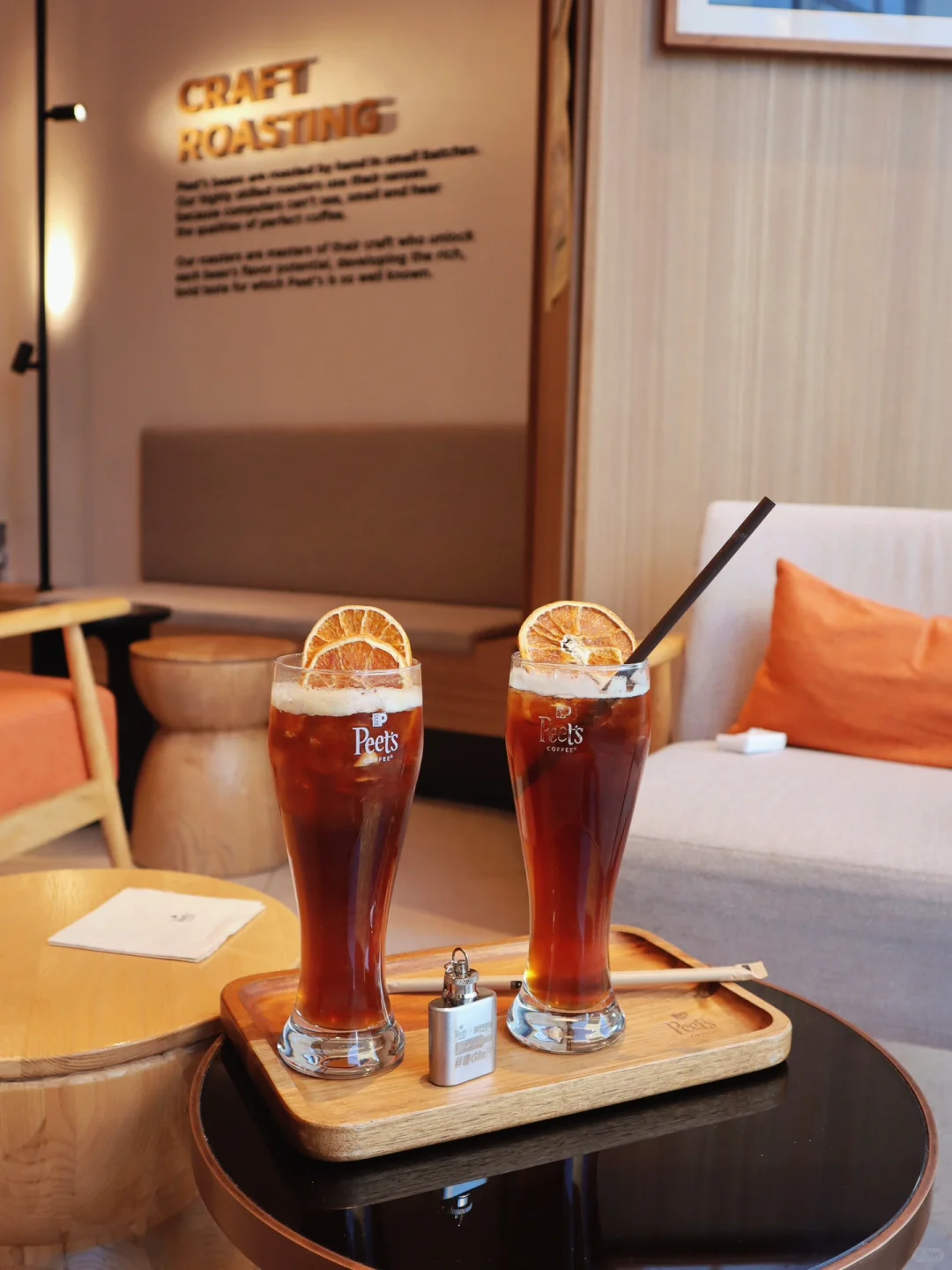 问了店员我这两杯用的百利冷萃豆都是周内新鲜烘焙的,有独特的酸橙果汁感和可可的尾调,闻起来有柑橘的香气,很适合和金酒特有的植物香气搭配。
