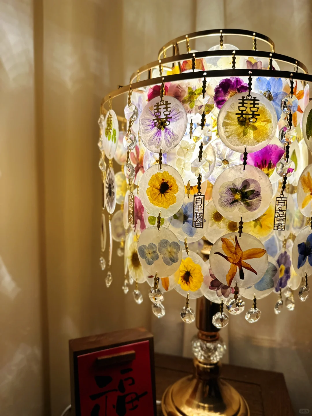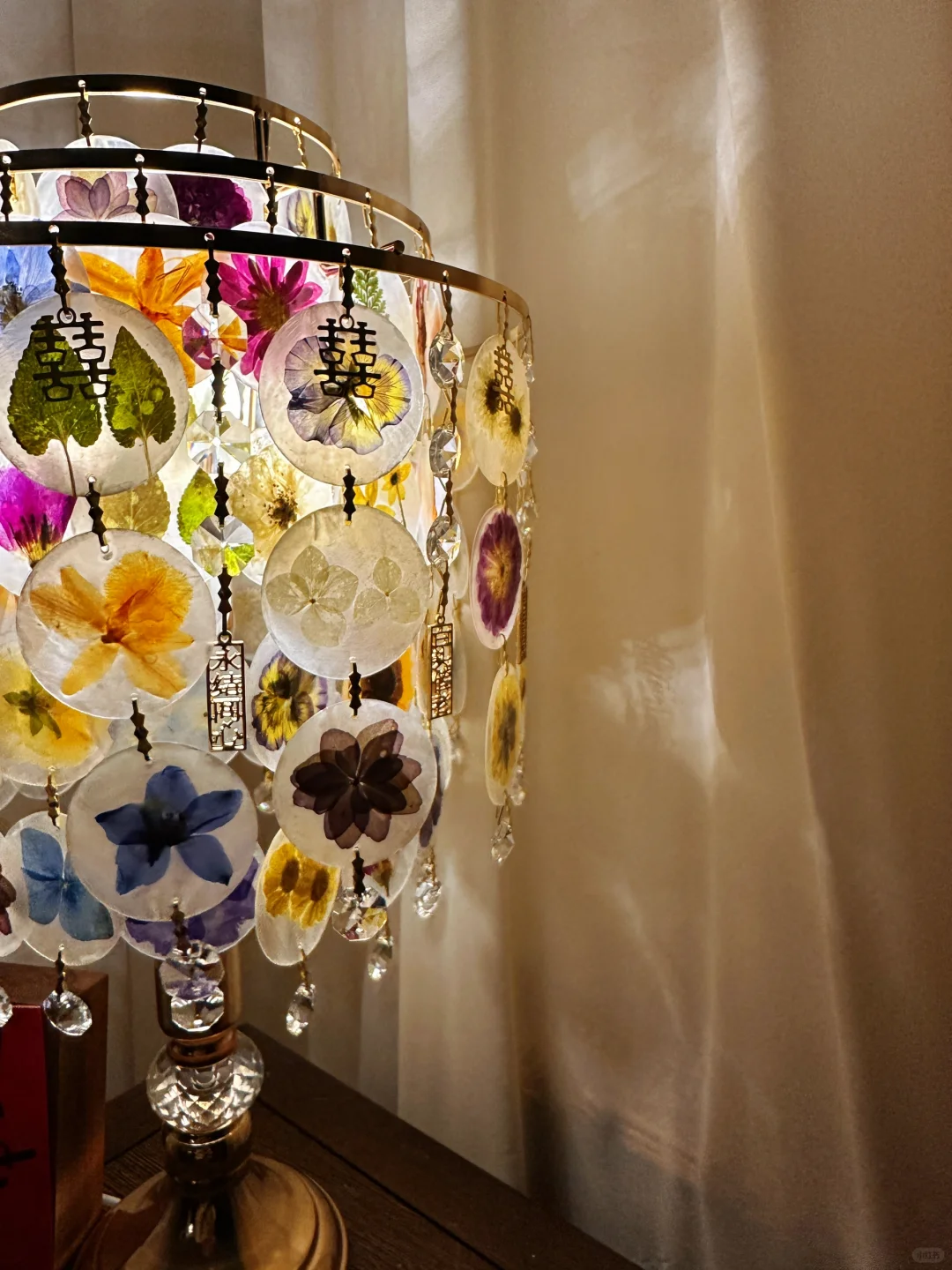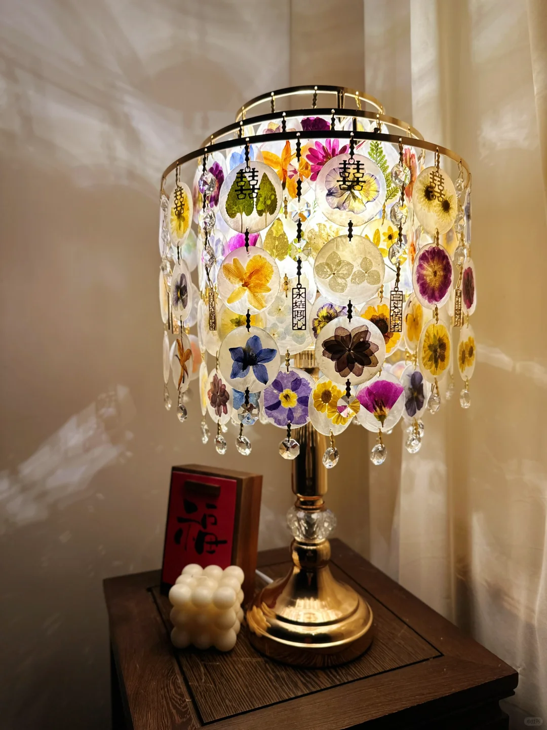 手作贝壳压花台灯做好了,小朋友舍不得送了