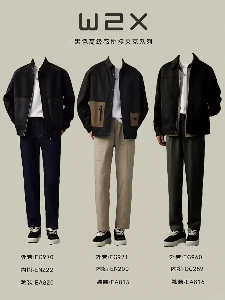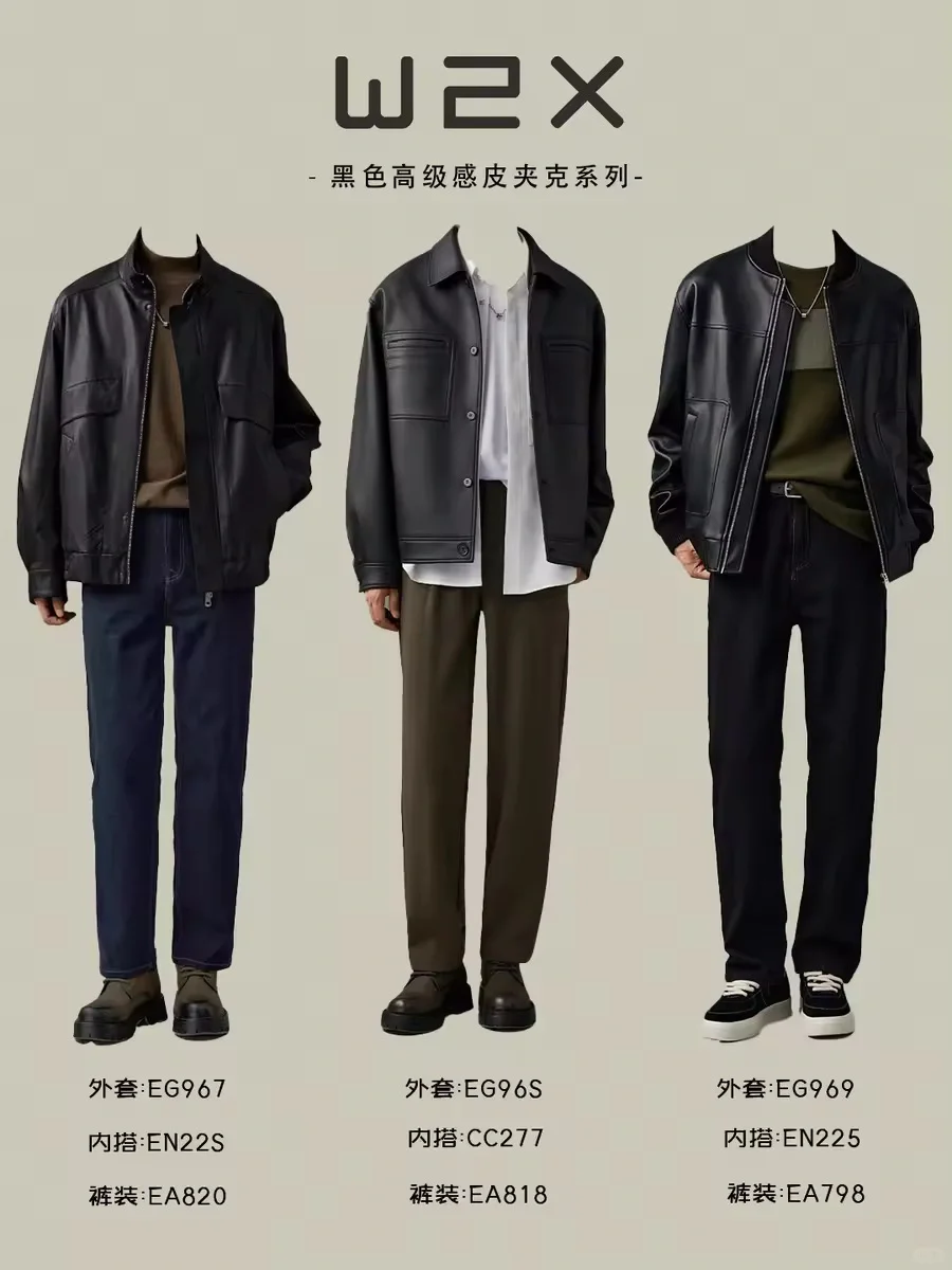 🥝满街的黑色穿搭,如何穿出高级感?答案就是材质方面下手,增加衣服的肌理感更显高级在P4中间和右边都是纺麂皮绒的材质,手感细腻哑光雾面的肌理配合金属扣点缀不管是叠穿还是单穿都别有一番儒雅绅士的低调和内敛
