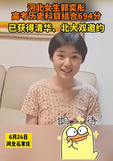 看看河北女孩郭奕彤的各科成绩:语文143、数学124、英语140、历史96、思想政治94、生物97!总分694分!