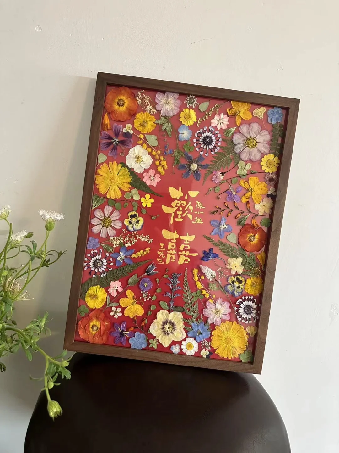心生欢喜 咸淡相宜 欢喜常在 时光漫长[气球R] 在你结婚的那天,捧着花见面应该是一件超级浪漫的事!制作了一幅压花装饰画,换了一种方式与你见面,把鲜花盛放时候的样子保存下来 和你一起分享!分享我的祝福和你的幸福! 要幸福哦![玫瑰R]