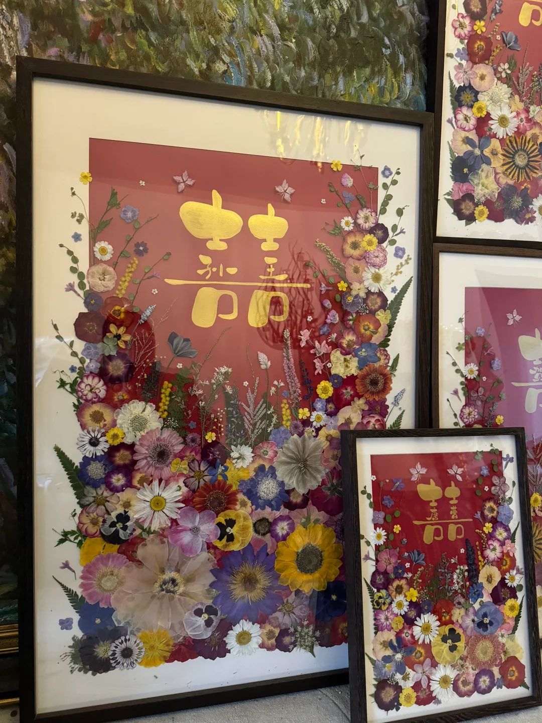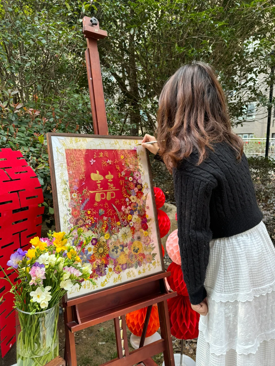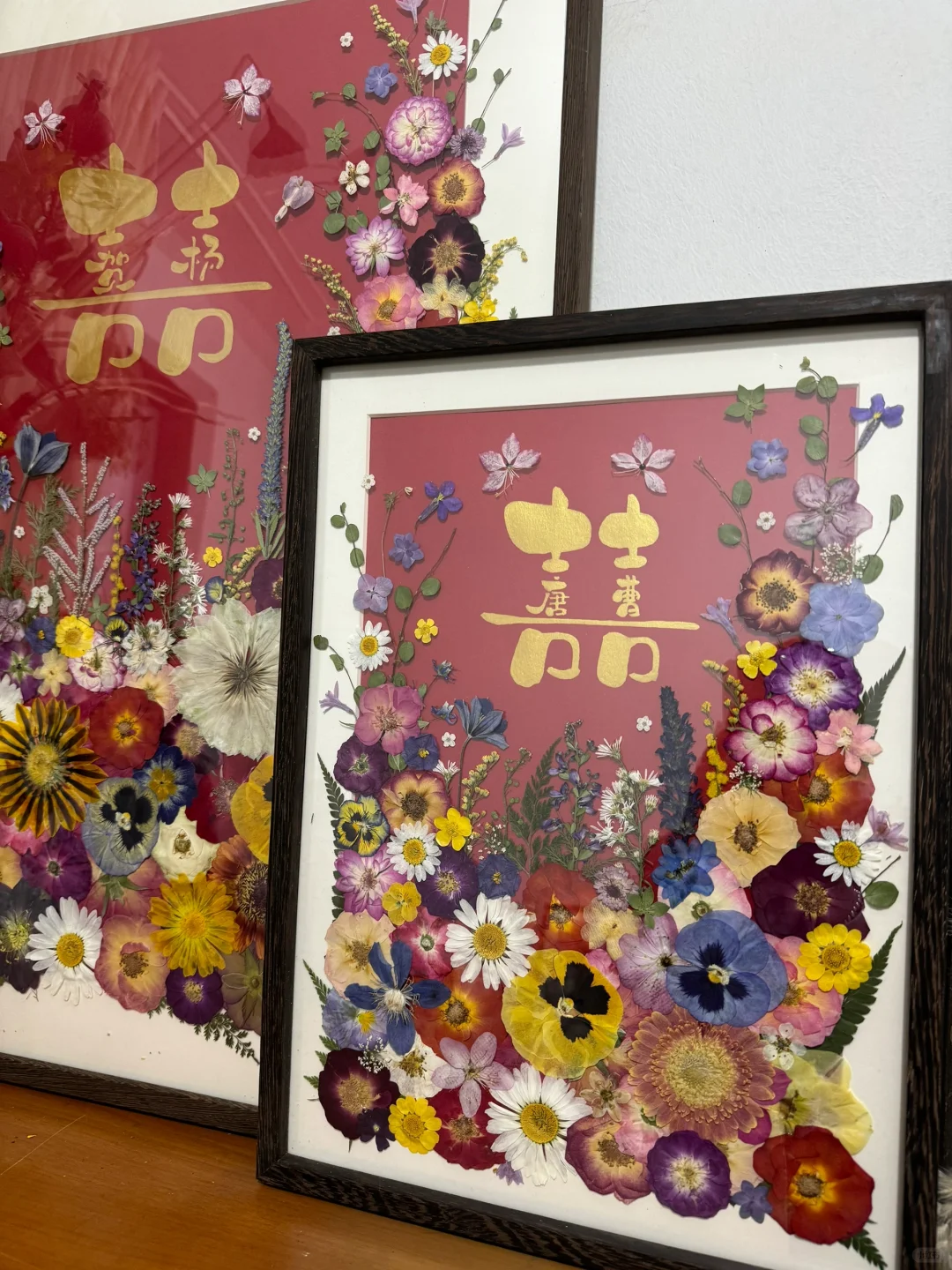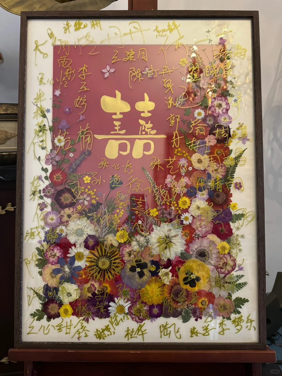 不仅仅是单纯的压花装饰画,签到板的创意也来源于朋友的奇想,一句玩笑话成全了这幅画的二次创想。 本来是一个人的礼物,现在一群人的祝福,幸福感满满。