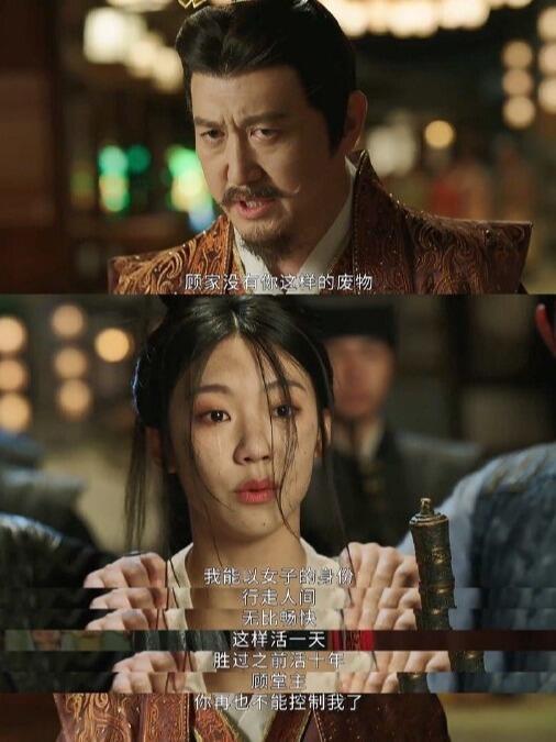 被重男轻女的父亲虐待的顾杉勇敢控诉:“我能以女子的身份行走人间,无比畅快,这样活一天胜过之前活十年,顾堂主,你再也不能控制我了”,到死都在反抗重男轻女;