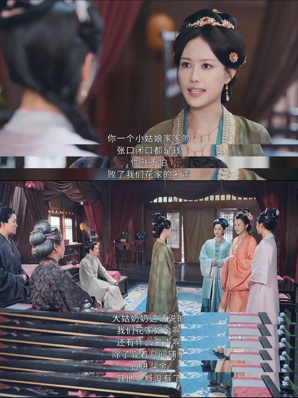 二夫人三夫人闻讯立马加入战场,听到大姑子说花芷做生意败坏花家名声,三夫人立马说花家啥都没有了,只剩“日进斗金”,二夫人阴阳大姑子嘴上说要名声实际帮老公要侄女屋里的人不要脸行为。