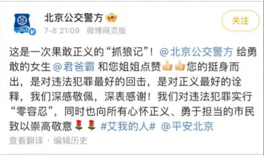 如不严惩,后患无穷!北京,女子坐地铁,突然听到一男子不可描述的喘息声,她回头一看,男子正用胯部顶一女孩的臀部,她勃然大怒,接下来做了一件事,连北京警方都给女子的抓狼行为点了赞。网友:真的很讨厌给坏人打马赛克?! 7月3日晚上8点,90后的小卢和姐姐乘坐北京地铁一号线,姐姐由于工作的原因需要赶往机场,小卢则前去送她。 由于此时正是下班点,到了国贸站后,地铁上挤满了乘客,车厢里也充满了香水味、汗臭味交缠在一起的味道。 正当小卢看手机的时候,突然听到了一阵不可描述的喘气声。 她闻声看去,立刻锁定了一对男女。 只见男子油头满面,表情十分猥琐,时不时地用胯部,不断顶向前面女孩的臀部,双手还抓着女孩的胳膊摸来摸去。 看到女孩的时候,小卢想起了什么。 还没到国贸站的时候,车厢里的人不算很多,小卢也是站在车厢门口的,到达国贸站后,小卢看到这个女孩和其他几个女孩站在一起,极有可能是朋友。 但由于上车人数太多,这个女孩上车了,其他几个朋友没有上来。 虽然动作有些不看,但小卢本以为男子是女孩的情侣,可当她看到女孩的表情后,却意识到事情的不对劲。 只见女孩非常紧张,也非常害怕,想要往旁边挪动,但人实在是太多,根本没有地方,这也就造成了这名男子越发的嚣张起来。 因此,小卢十分确定,男子是在猥亵这名女孩! 当小卢瞪着男子的时候,男子也感受到有人在注视着他,和小卢对视后,立刻收敛了起来,但一回过后,又用胯部不断顶向女孩的臀部。 小卢忍不了了,直接把女孩给拉了过来,问她认不认识男子,女孩说不认识。 小卢又问女孩,男子是不是猥亵她,女孩确定了。 于是,小卢直接大声质问男子,没想到男子却狡辩称人太多了,只是挤着了而已。 这下小卢被气笑了,既然是挤着了,也不用用下面去顶撞人家吧?还用手多次抚摸? 男子听完也不害怕,称自己不小心碰到人家,人家又没有说什么,关小卢什么事? 其实小卢身为女性,她也知道女生被猥亵时的状态,脑子里空空的,真的不知道该怎么办,直接傻掉了。 但女生不说,并不代表男子就没有做。 因此小卢对男子说,自己已经用手机拍下他违法行为了,如果被冤枉了,就跟她去警察局一趟,把事情搞清楚。 在这过程中,小卢说话的声音很大,也是想让乘客都注意到男子。 没想到,车厢里传来一个男的大声说:“你们不要吵了,打扰我看漫画了……” 小卢听完这话后,其实有些生气,你可以视而不见,也可以不管,但也不能说这样的话,这是助长色狼的行为。 男子见反驳不过,企图往其他车厢挪动。 但小卢怎么会让男子所愿,一直跟着他。 好在车厢里的人实在是太多,男子最终也没有挪动多远。 到了传媒大学站后,小卢鼓起勇气,拉住了男子的包,让他跟自己下去,否则就让他比现在更难堪。 这时的男子心里有些发毛,更害怕小卢真的录下了他的所作所为,只好跟着她下地铁。 随后,小卢拉着男子,让姐姐去喊工作人员。 很快,有民警飞快赶来,把男子带走。 而小卢也和女孩交换了联系方式,称如果需要帮忙,可以随时给她打电话。 由于姐姐还需要赶飞机,两人又乘坐地铁前往机场。 送完姐姐后,小卢又回到派出所做笔录,直到凌晨2点才回家。 凌晨4点,小卢接到民警的信息,男子招认了,行政拘留10天! 事后,就连北京公交警方都发文为小卢点赞: 您的挺身而出,是对违法犯罪最好的回击,是对正义最好的诠释,我们深感敬佩,深表感谢!我们对违法犯罪实行“零容忍”,同时也向所有心怀正义、勇于担当的市民致以崇高敬意。 小卢身为一名女子,竟然还敢挺身而出,可以说是每个人学习的榜样!