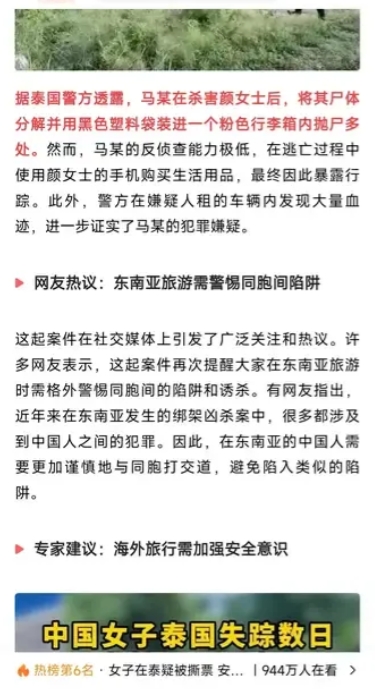 这也让很多人想起王暖暖被丈夫推下山崖的事件,这些都是在东南亚,而且泰国发生的。