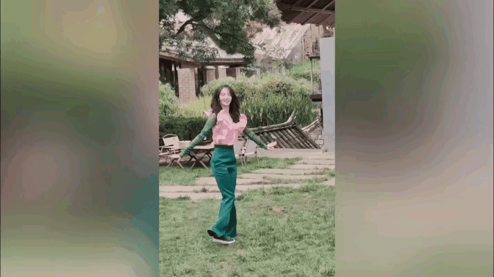 #金晨绿色喇叭裤#《青春环游记》路透中金晨穿绿色喇叭裤走T步,不得不说,还很有