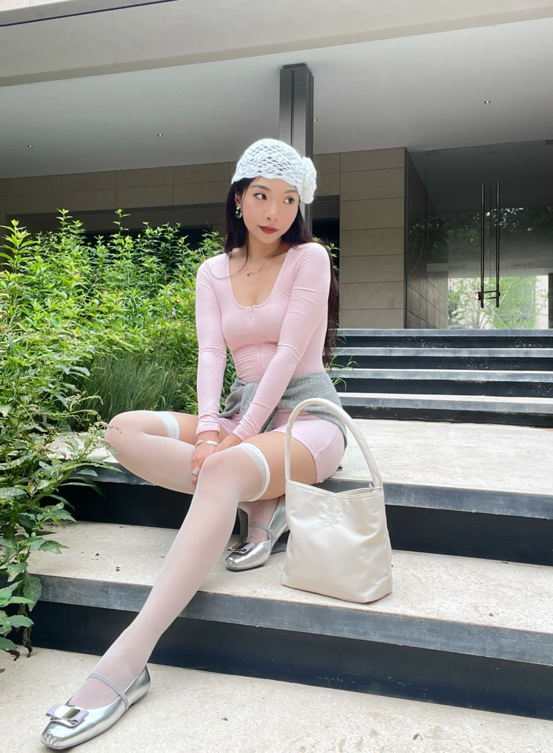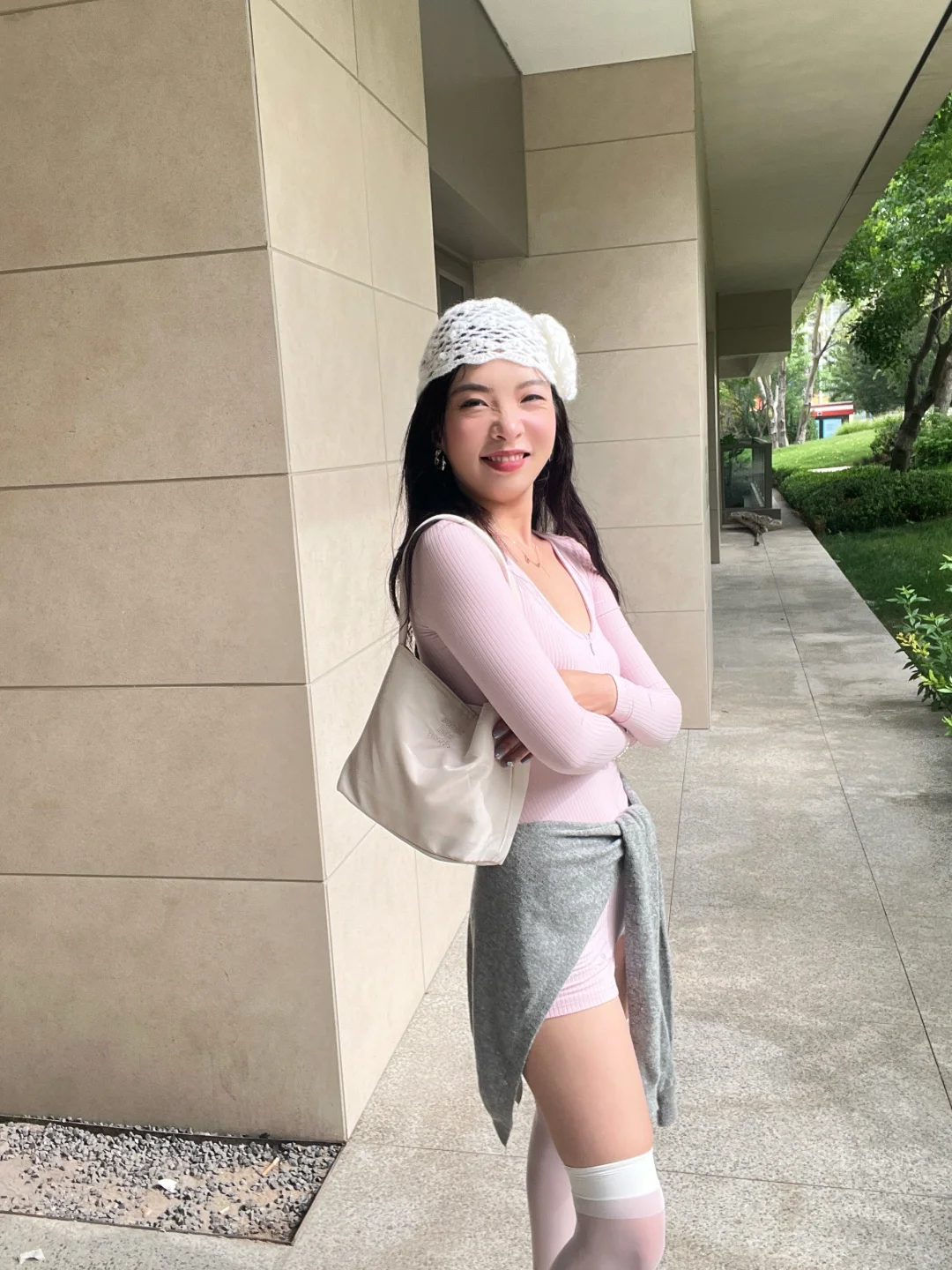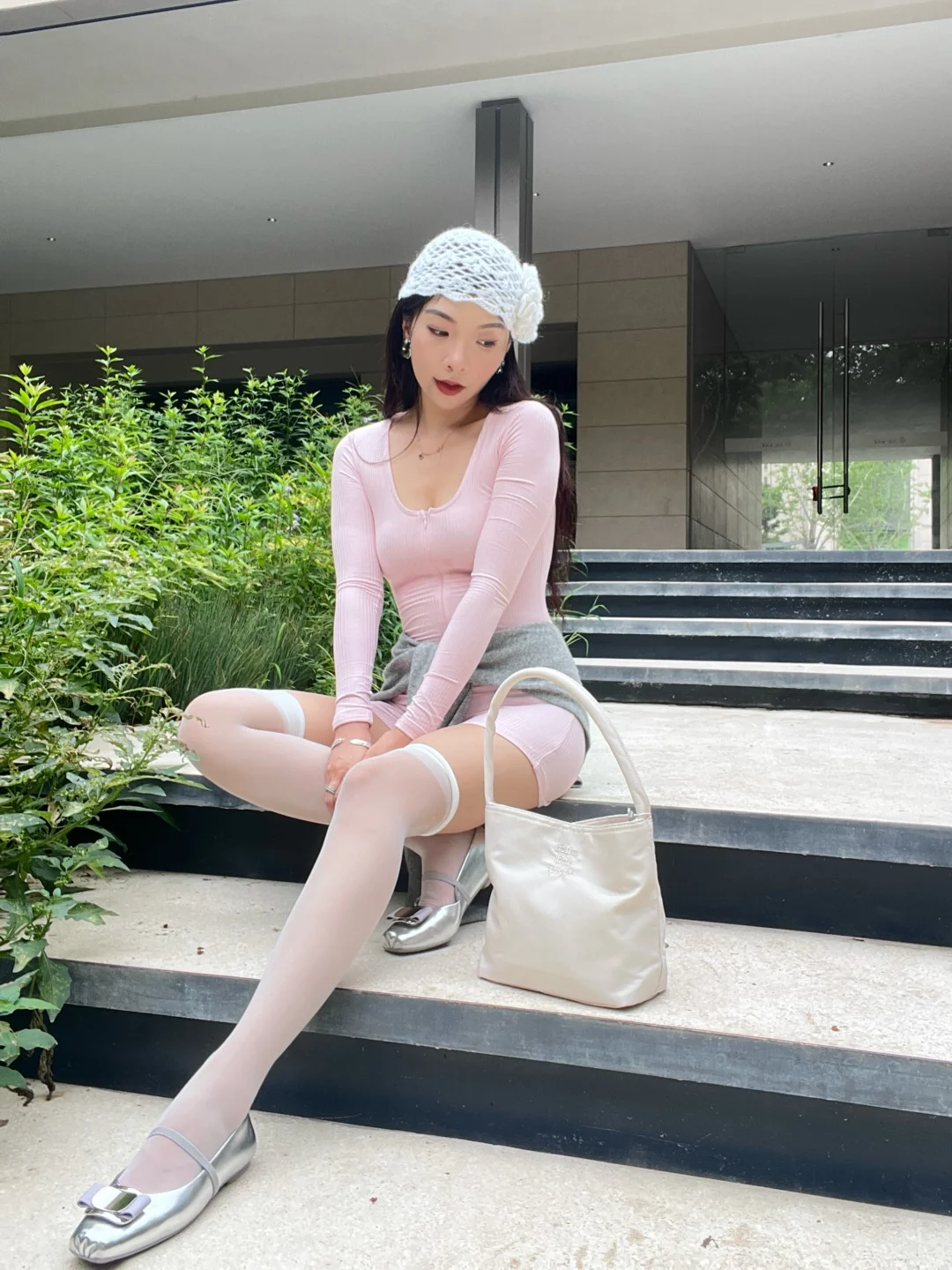 这粉色连体衣真能从家穿到街?不会太单调?不过配袜子芭蕾鞋倒是挺新颖的,值得一试?