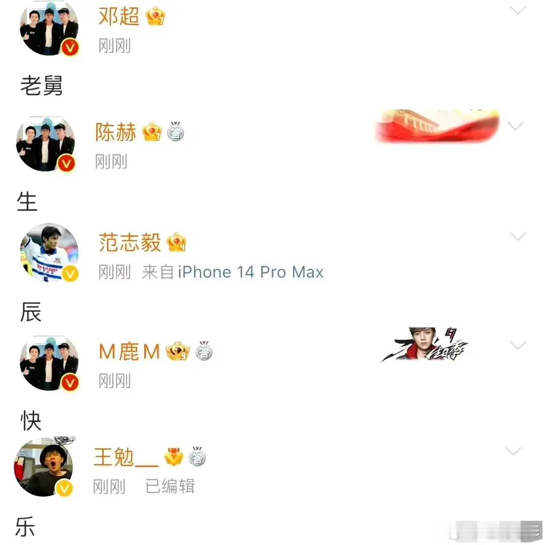 陈赫是“生”,范志毅是“辰”,鹿晗是“快”,王勉是“乐”。
