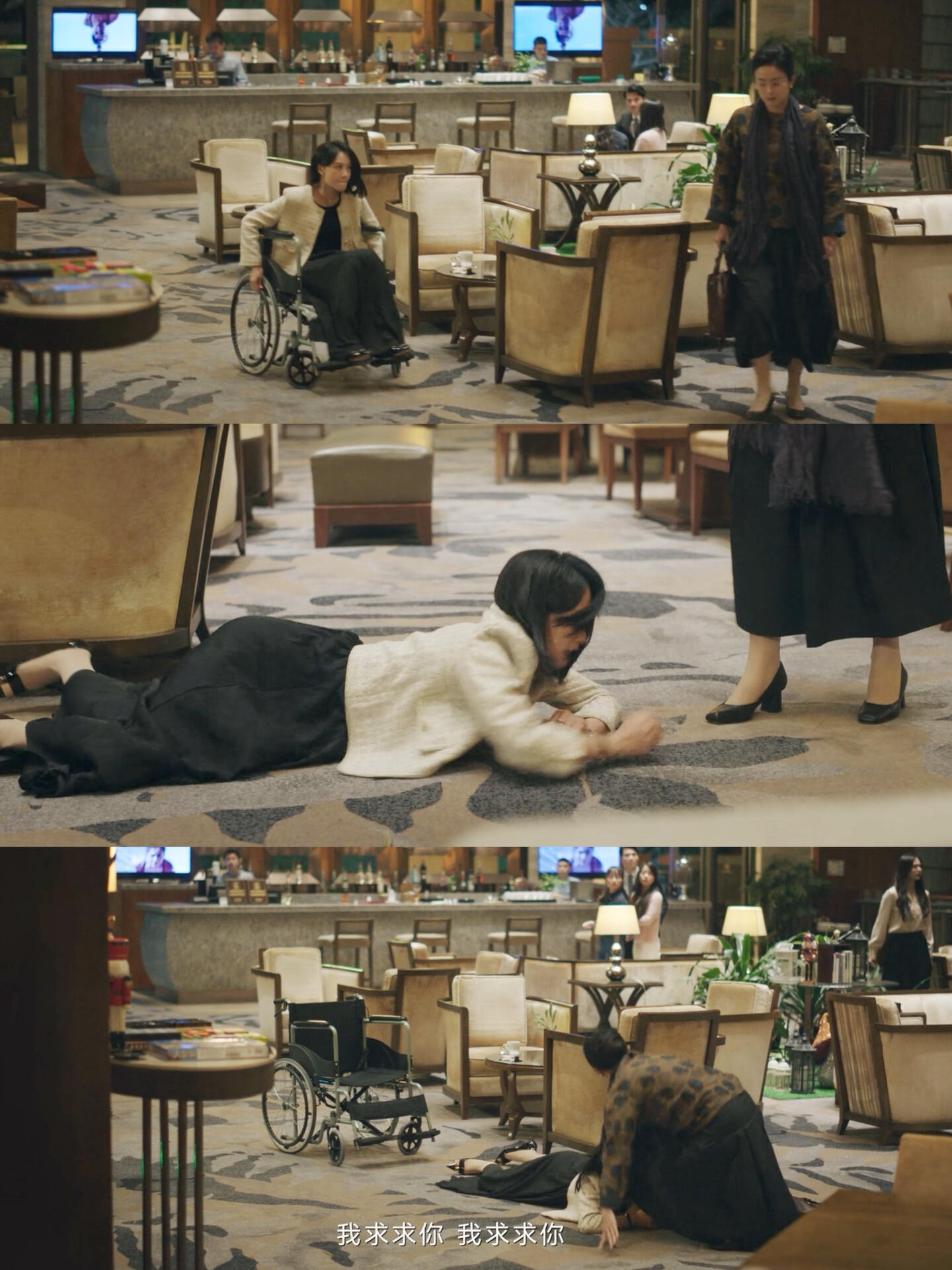 苏真真见对方要走 她摔下轮椅 趴在地上 拽住杨女士
