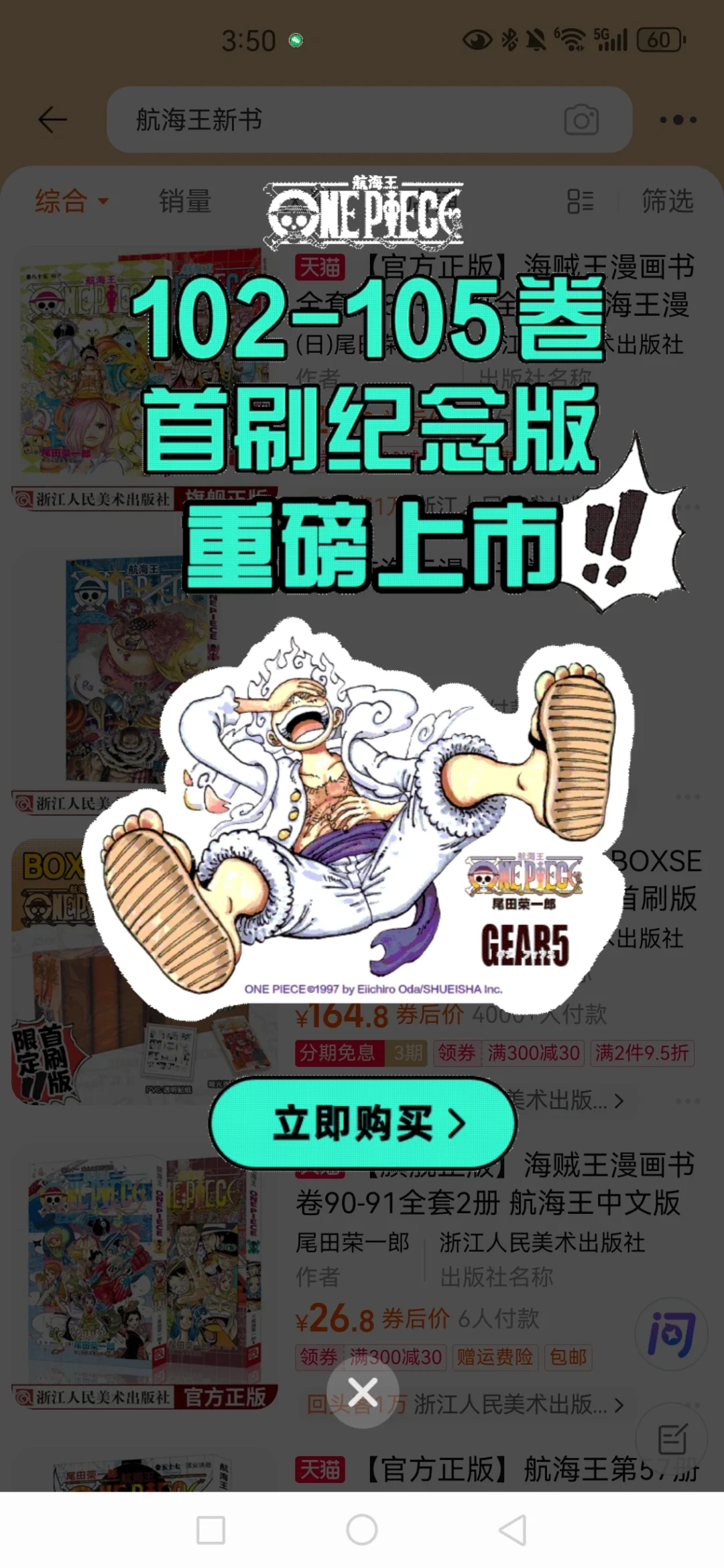 浙美太给力啦!苦等一年的《航海王》卷102-105GEAR5首刷版重磅来袭!