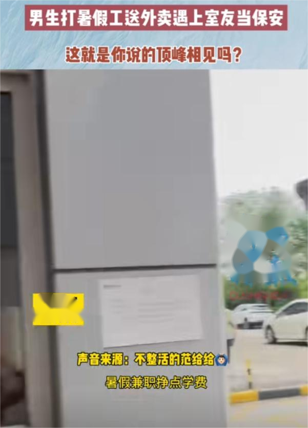 强强联手了!江苏南京,一位大学生假期兼职送外卖,巧合的是,途径一小区时发现保安很眼熟,靠近一看,这不是寝室室友吗,男生玩笑道:这个小区以后只能我送了,网友:一个从商一个从政 “兄弟们,以后这个小区的外卖,只能我送了!”