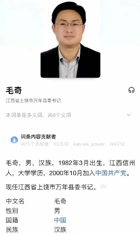 为官者要有敬畏之心,有权不能任性,这不江西万年县委书记毛奇被本县退休老教师实名举报长期对女下属实施精神控制、强制猥亵性侵,还涉嫌滥用职权留置女下属。 看看毛书记公开的简历,真是不一般,80后县委书记,正值风华正茂。他2003年大学本科毕业从乡镇起步,2009年迎来人生第一次仕途重大转折点,那年27岁的小毛,任职市政府办秘书处副处长,实现了市县乡三级跳,从此进入仕途快车道。 两年后,即提拔会议处长,这个时候的毛处长遇见贵人了,转战市委办、团市委,2020年开始主政地方,一年后荣升县委书记。 受组织培养多年,历经多部门锻炼的80后县委书记本应放低身段,扑下身子谋一方民生经济发展。可他却经常让女下属“去住所聊天”,行苟且之事,等待他的必将是正义的调查处理。