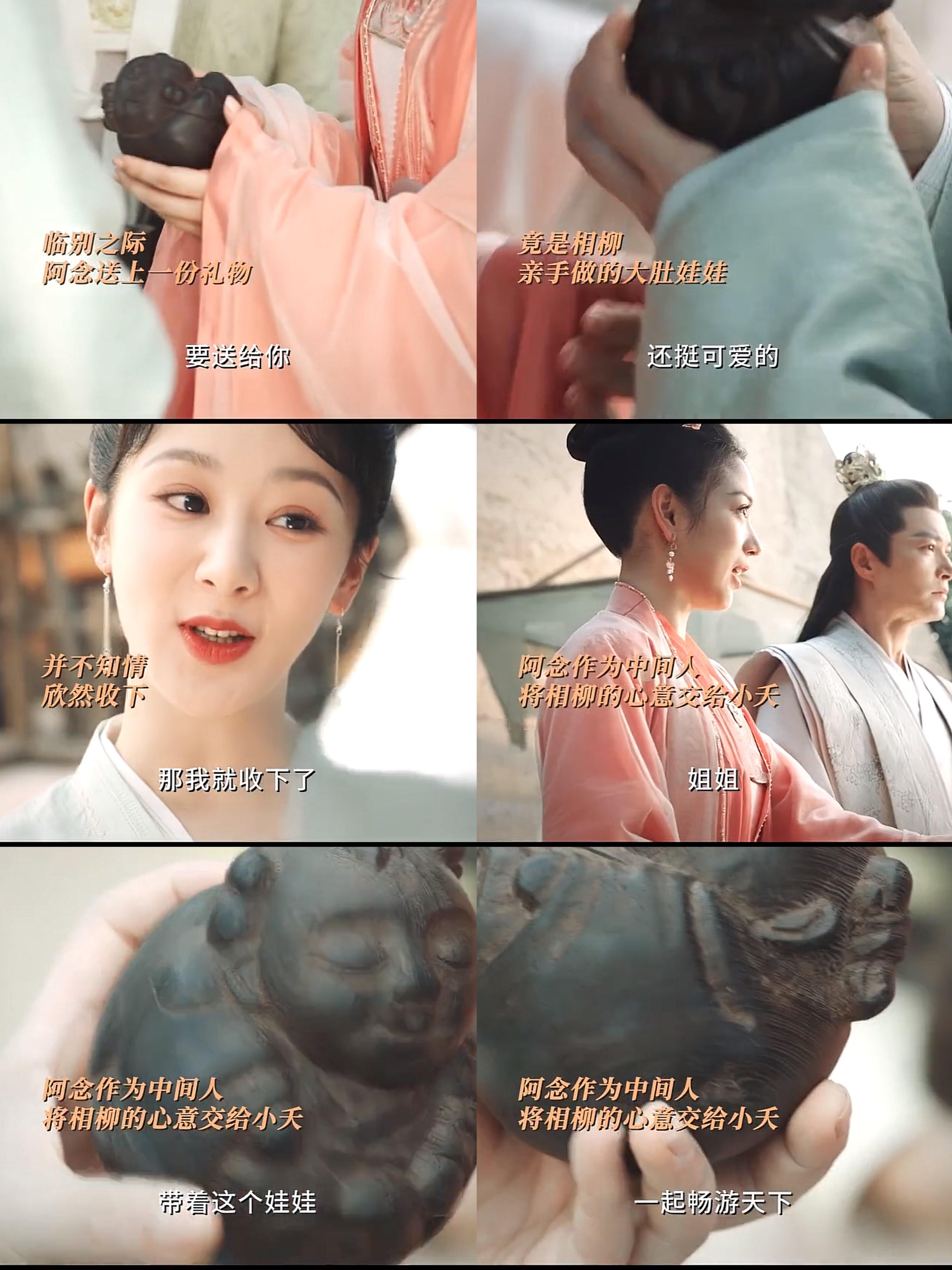 阿念新婚礼物(相柳准备的)送给小夭,叮嘱她要好好保管,带着这个娃娃一起看畅游天下……
