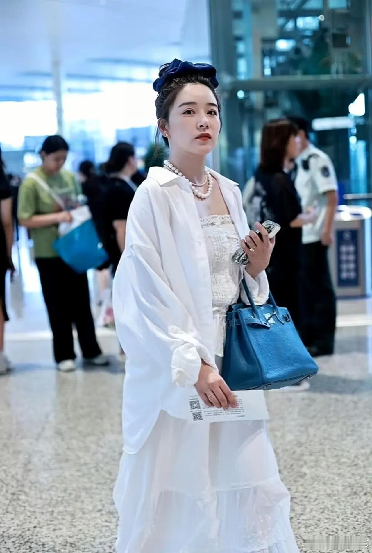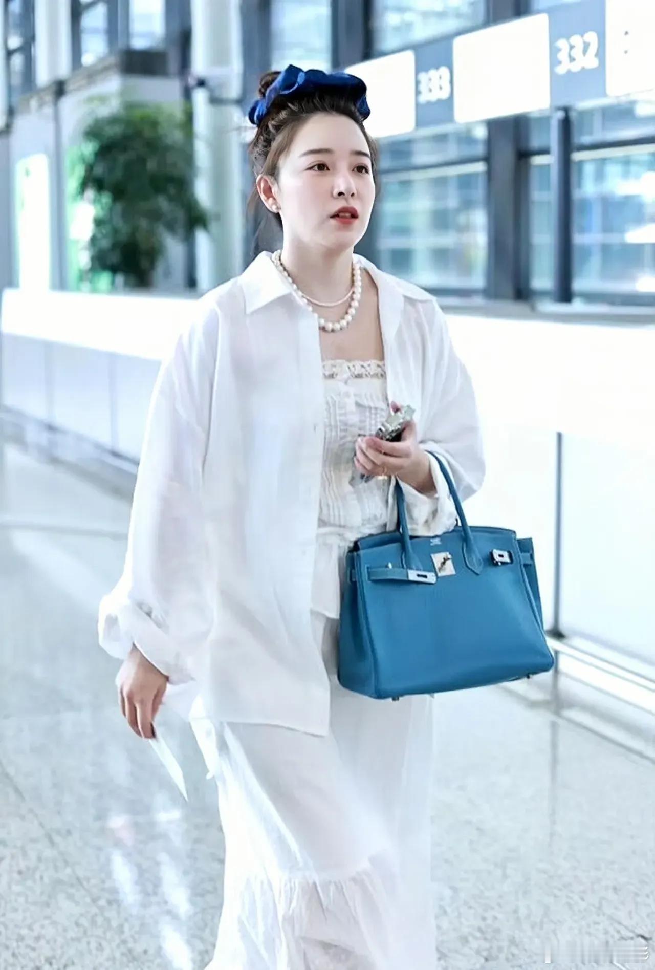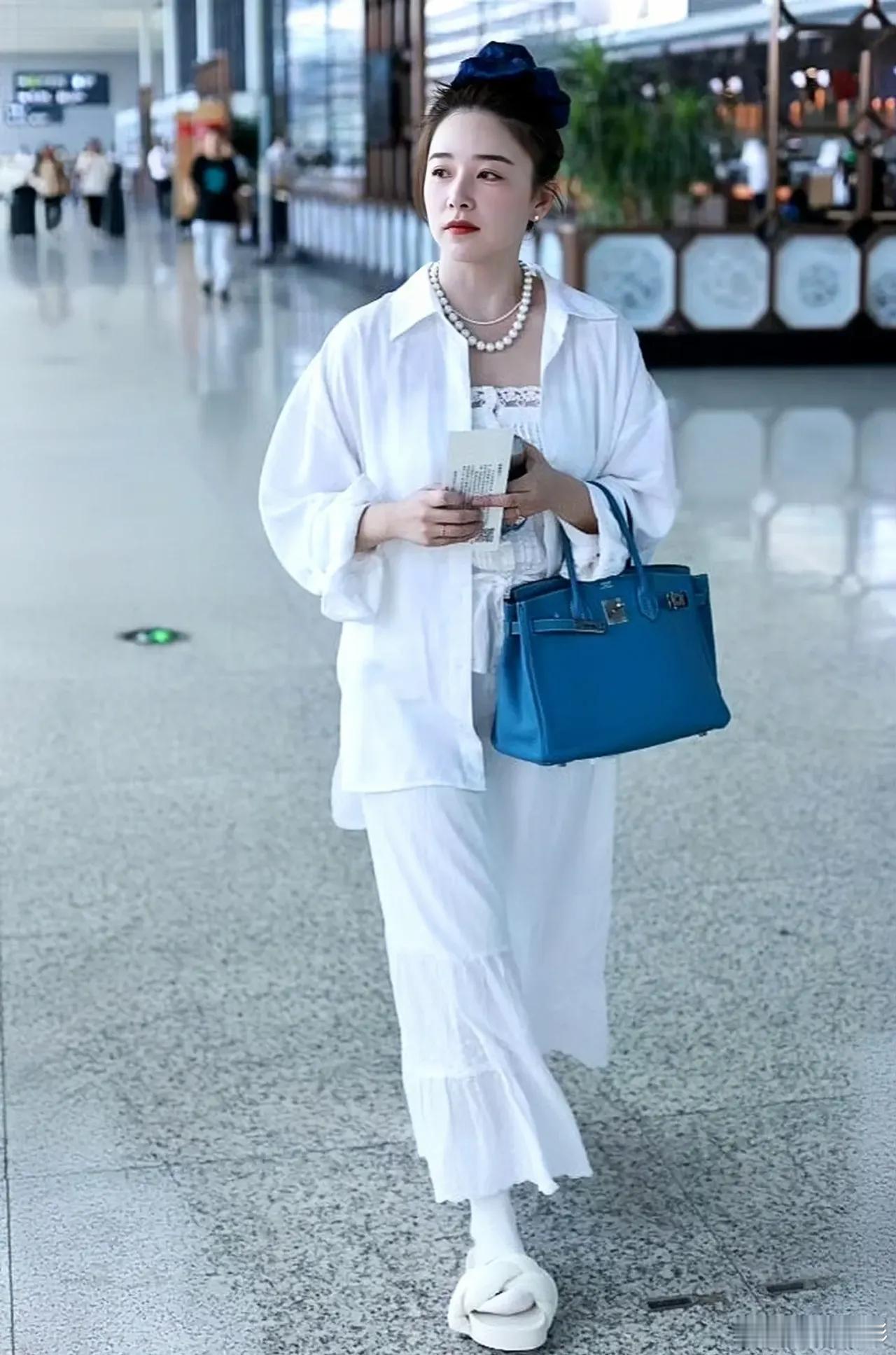 阚清子与未婚夫现身机场,为方便媒体拍照,未婚夫戴着口罩跟在妻子身后,两人一前一后很有默契。画面中,阚清子有种幸福肥的感觉,珠圆玉润,皮肤白到发光,很有富态气质!#阚清子与未婚夫前后走机场#