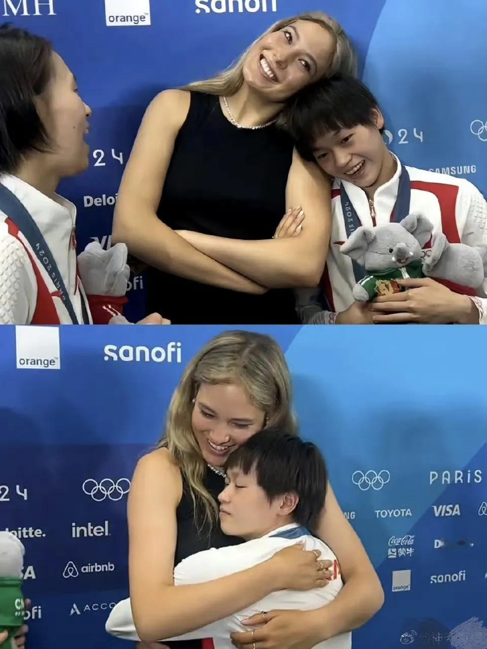 谷爱凌不愧为名媛,前两天和全红婵抱抱,哄的全妹开心的像个小宝宝。昨天谷爱凌来到了